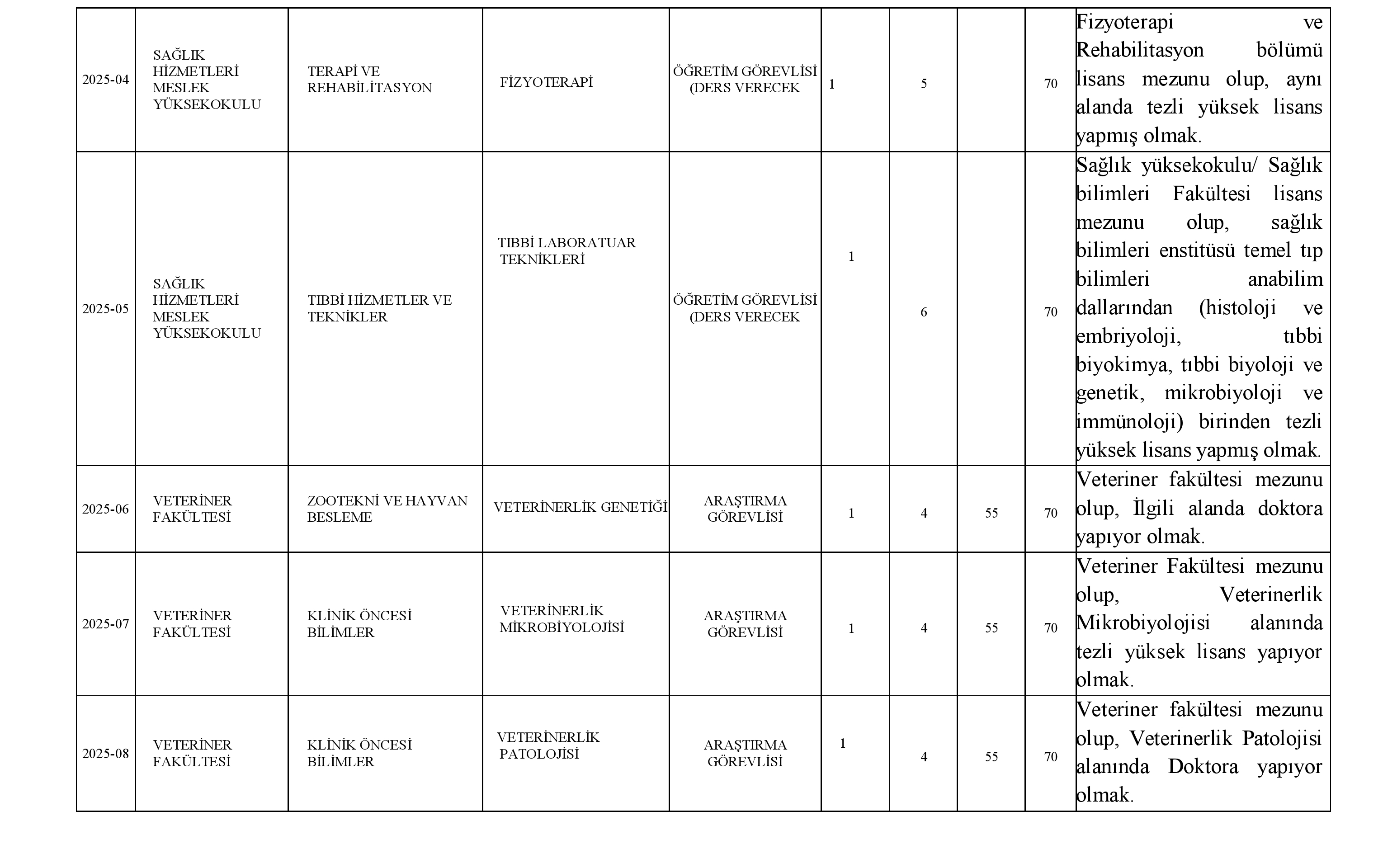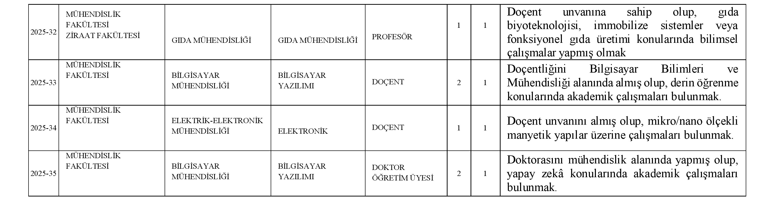 Üniversitemizin aşağıda belirtilen birimlerine, 2547 ve 2914 sayılı Kanun, "Öğretim Üyeliğine Yükseltilme ve Atanma Yönetmeliği" nin yürürlükteki ilgili maddeleri ile Üniversitemiz Öğretim Üyeliğine Yükseltilme ve Atanma Kriterlerine göre öğretim üyeleri alınacaktır.
