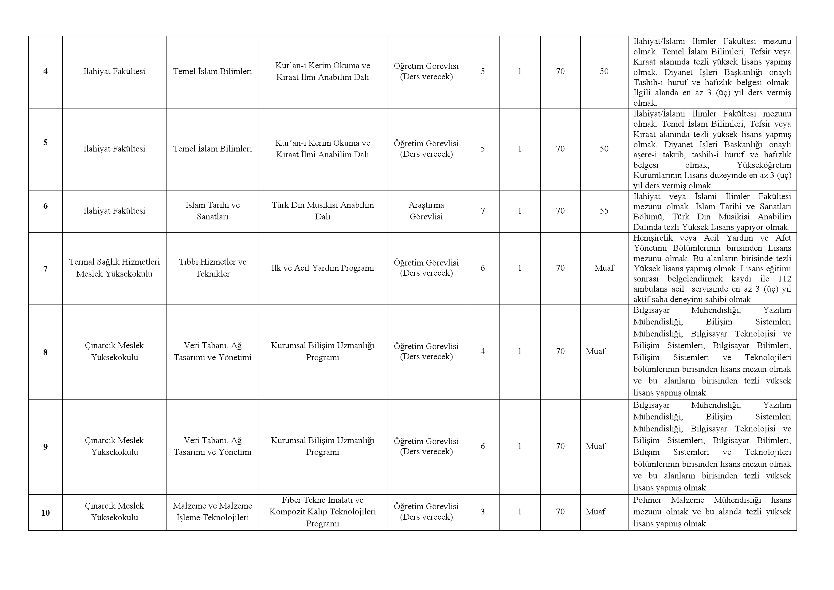 Üniversitemizin aşağıda belirtilen birimlerine 2547 sayılı Yükseköğretim Kanunun 31. ve 50/d maddeleri ile "Öğretim Üyesi Dışındaki Öğretim Elemanı Kadrolarına Yapılacak Atamalarda Uygulanacak Merkezi Sınav İle Giriş Sınavlarına İlişkin Usul ve Esaslar Hakkında Yönetmelik" hükümleri uyarınca Öğretim Görevlisi ve Araştırma Görevlisi alınacaktır.