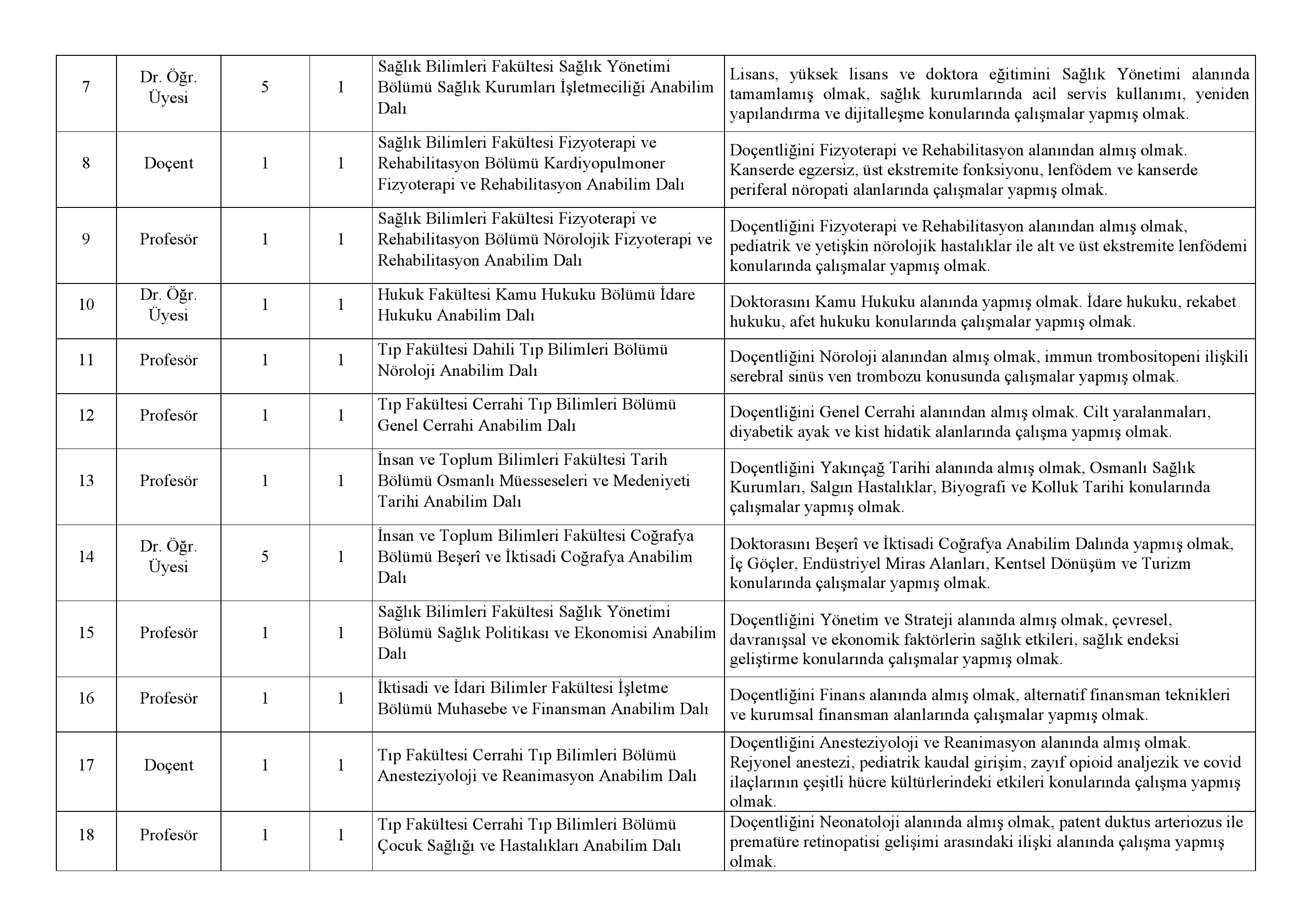 - Profesör ünvanına sahip öğretim üyeleri sahip olduğu ünvandan daha alt ünvanlı kadroya başvuru yapamazlar.