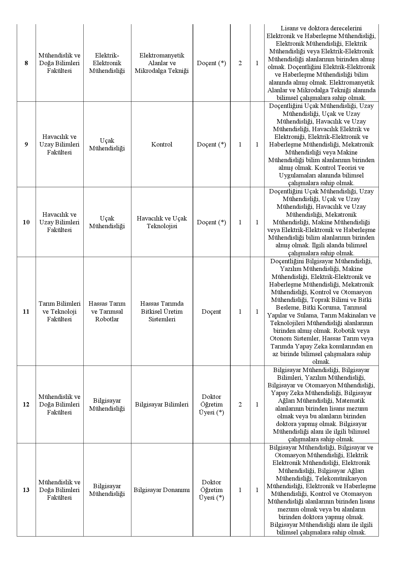 7- Profesör unvanı olanlar, Doçent ve Doktor Öğretim Üyesi kadrolarına, Doçent unvanı olanlar da Doktor Öğretim Üyesi kadrolarına başvuru yapamazlar.