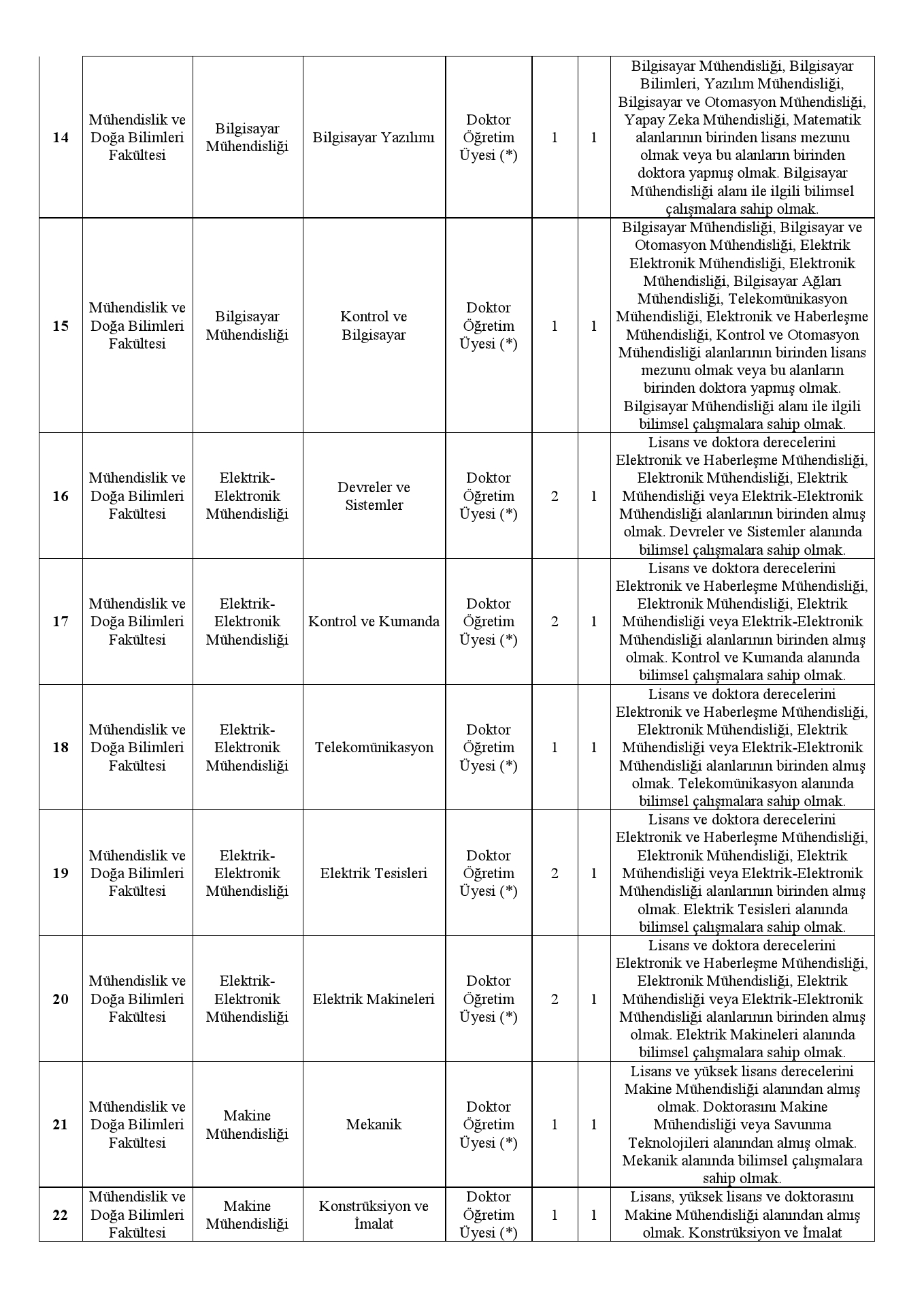 14- İlanda belirtilen koşulları taşımayan ve başvuru süreci içinde yapılmayan müracaatlar dikkate alınmayacaktır.