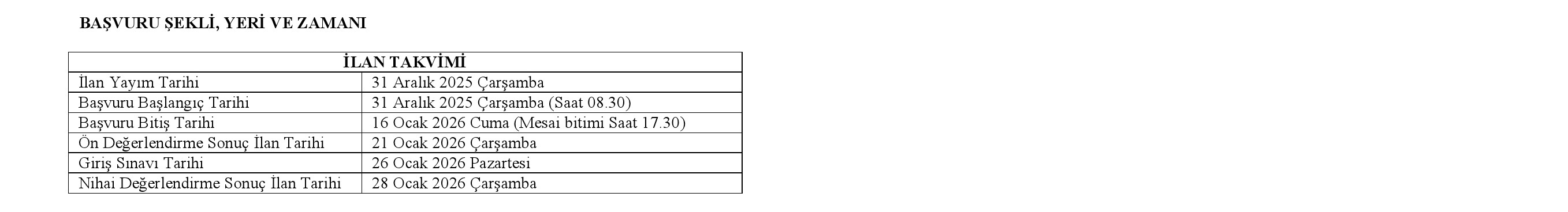. Adaylar başvurularını, ilan takviminde belirtilen süreler içerisinde ilan edilen kadronun karşısında gösterilen adrese şahsen yapmaları gerekmektedir. Şahsen yapılmayan başvurular kabul edilmeyecektir.