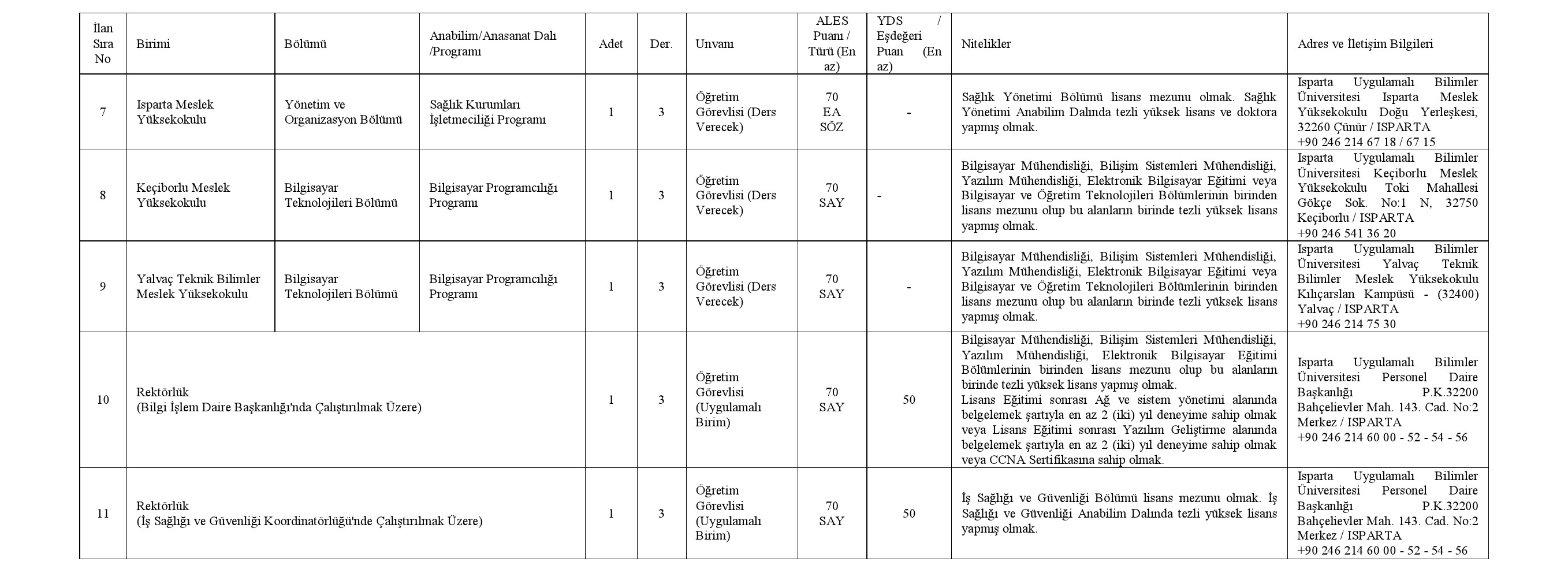 ISPARTA UYGULAMALI BİLİMLER ÜNİVERSİTESİ REKTÖRLÜĞÜNDEN (2025-4): A-) ÖĞRETİM ÜYESİ KADROLARINA AİT İLAN