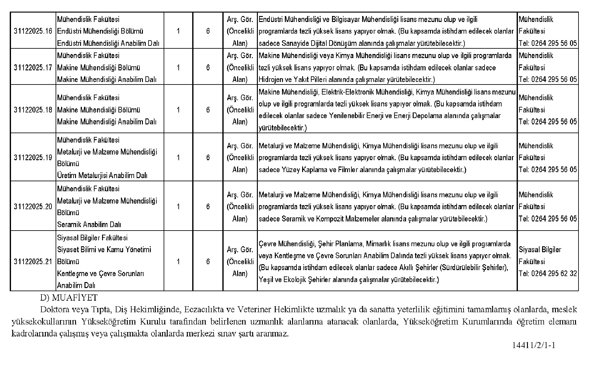 Sakarya Üniversitesi Rektörlüğünden: