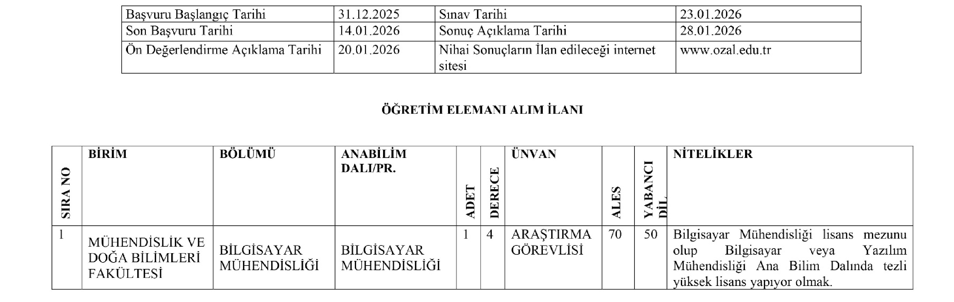 ÖĞRETİM ELEMANI ALIM İLANI
