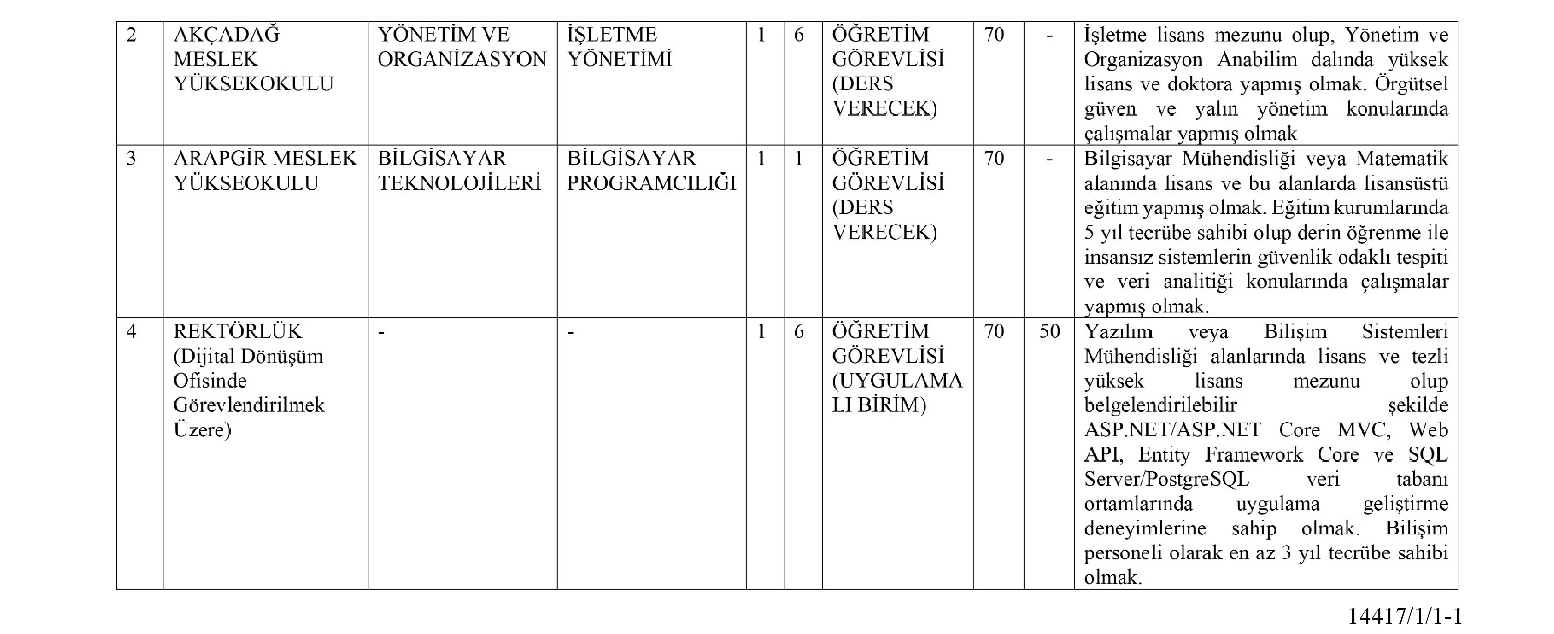 12-Adaylar ilan edilen kadrolardan sadece birine müracaat edebilir