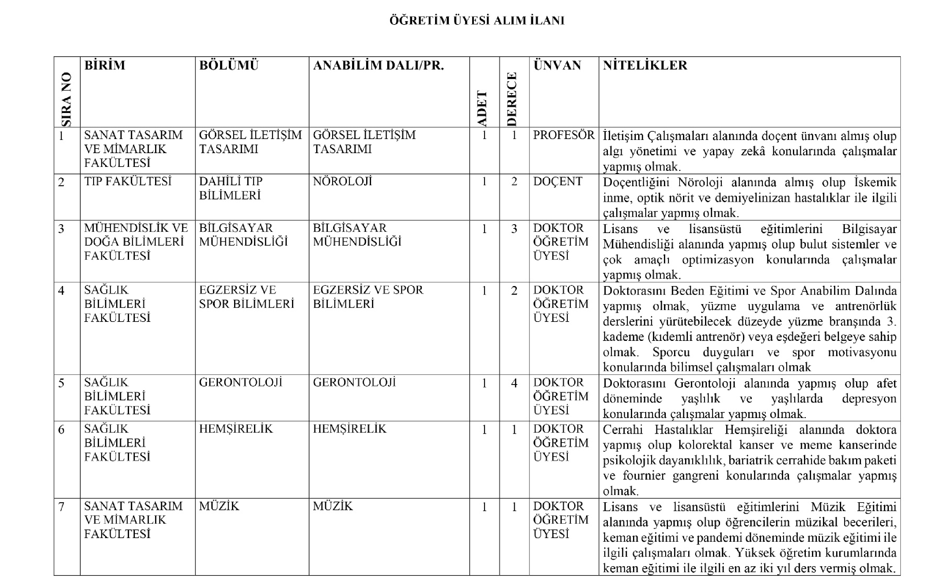 ÖĞRETİM ÜYESİ ALIM İLANI