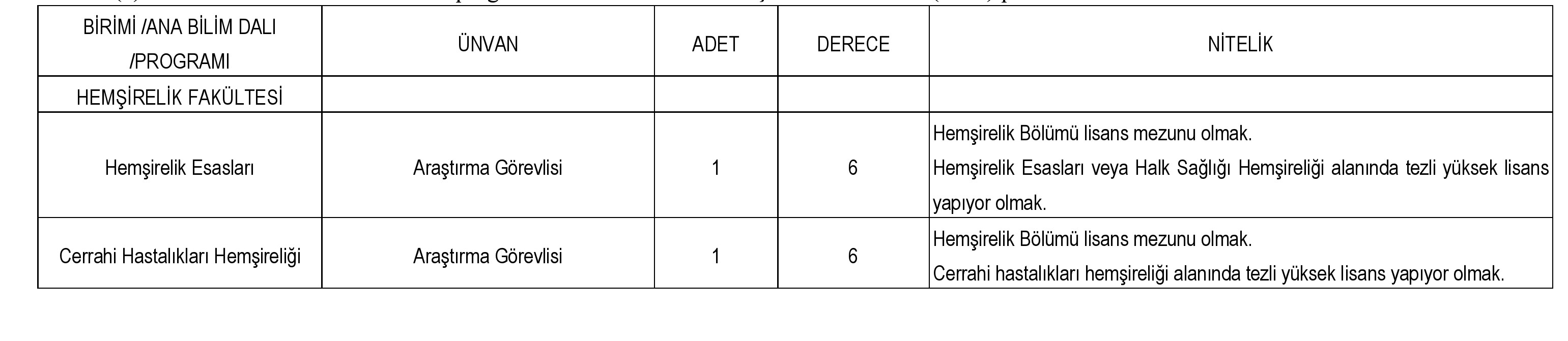 Elemanı Kadrolarına Yapılacak Atamalarda Uygulanacak Merkezi Sınav ile Giriş Sınavlarına İlişkin Usul ve Esaslar Hakkında Yönetmelik" hükümleri uyarınca öncelikli alanlarda Araştırma Görevlisi alınacaktır.
