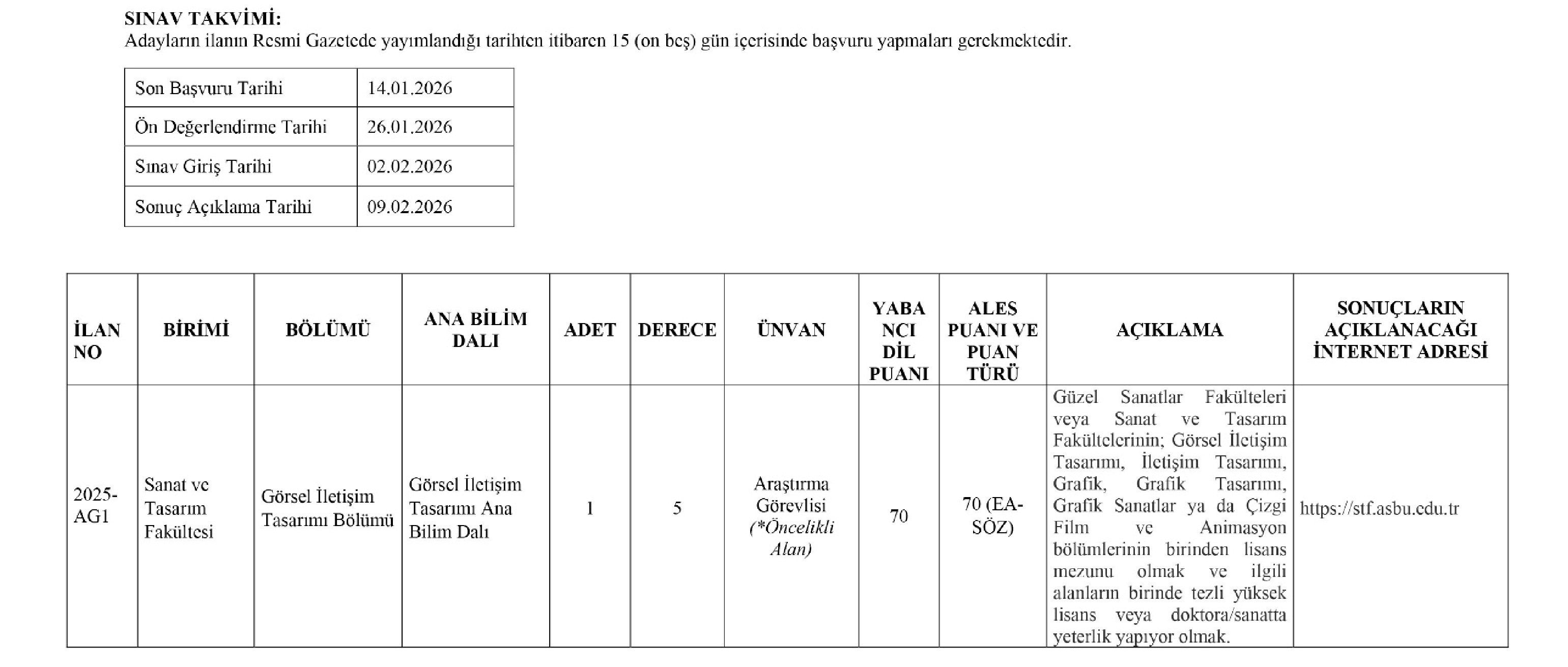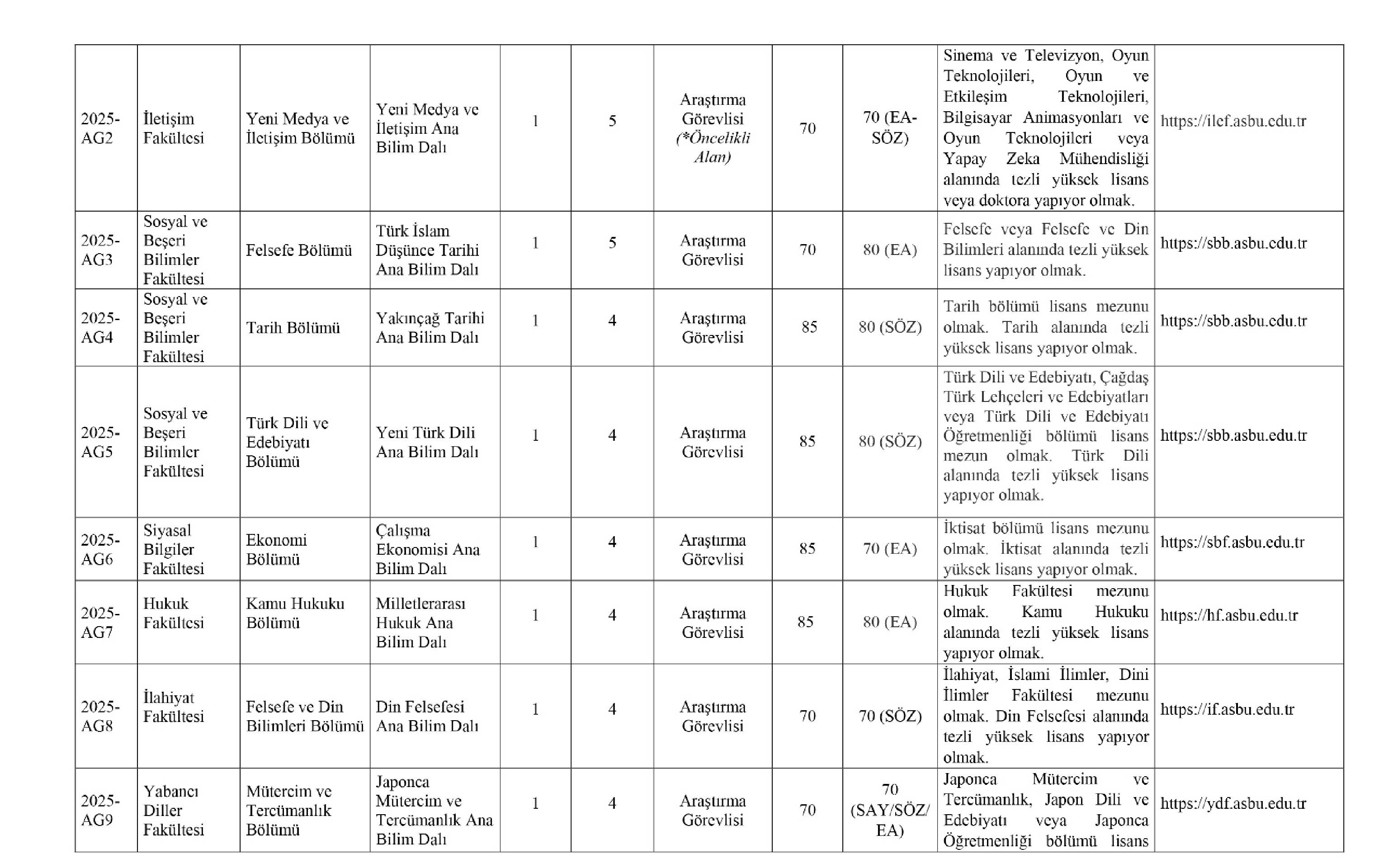 9. İlanımıza http://www.asbu.edu.tradresinden ulaşılabilir.