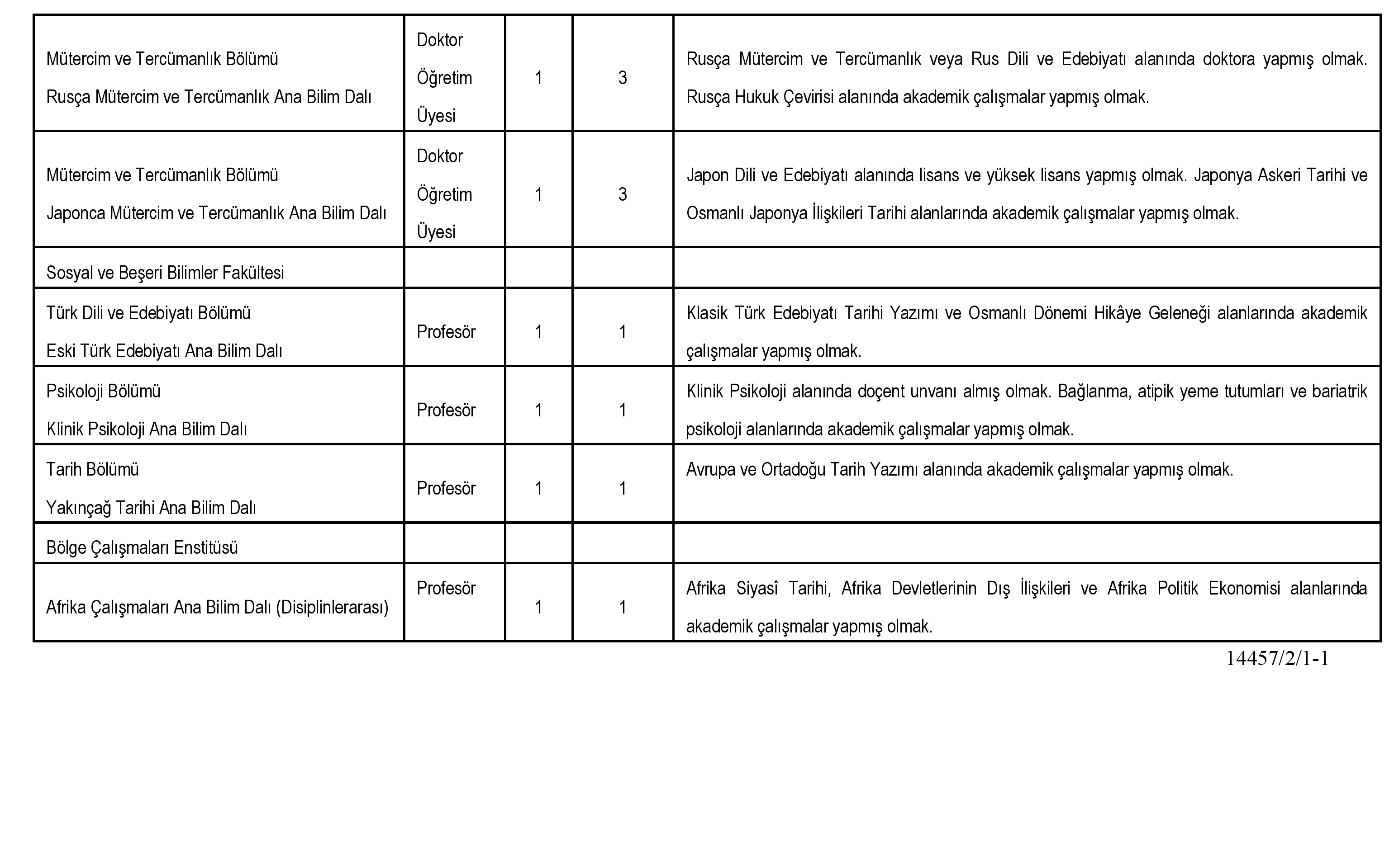 * Öncelikli Alan kapsamındaki atamalarda Öncelikli Alanlardaki Araştırma Görevlisi Kadrolarına Atananların Lisansüstü Eğilimleri İle Diğer Hususlara İlişkin Usul ve Esaslar hükümleri uygulanacaktır.