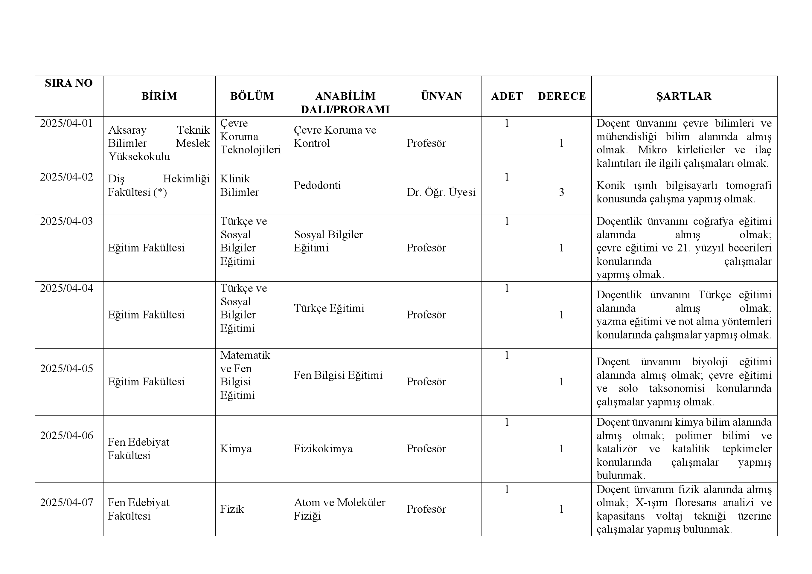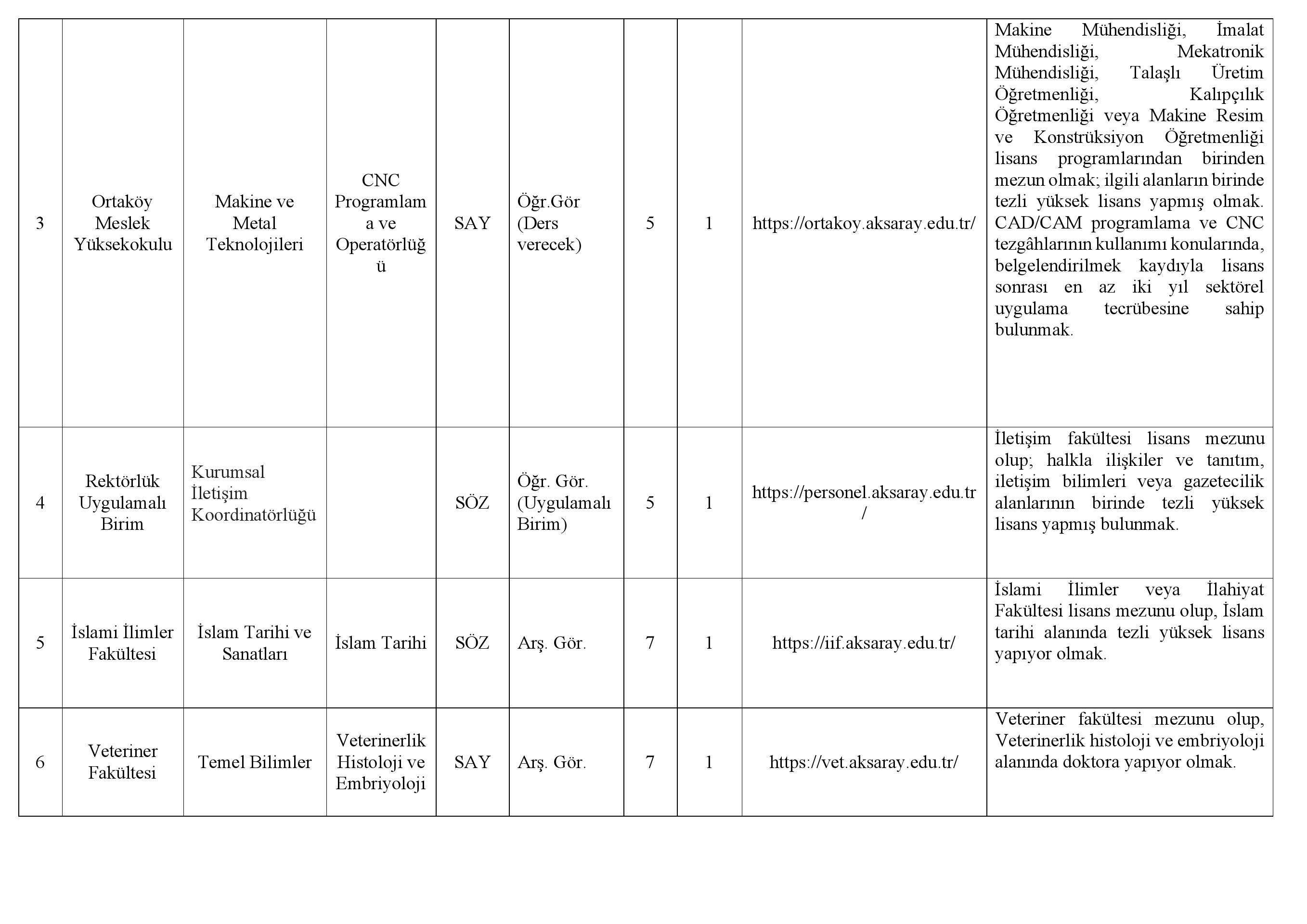 Aksaray Üniversitesi Rektörlüğünden: