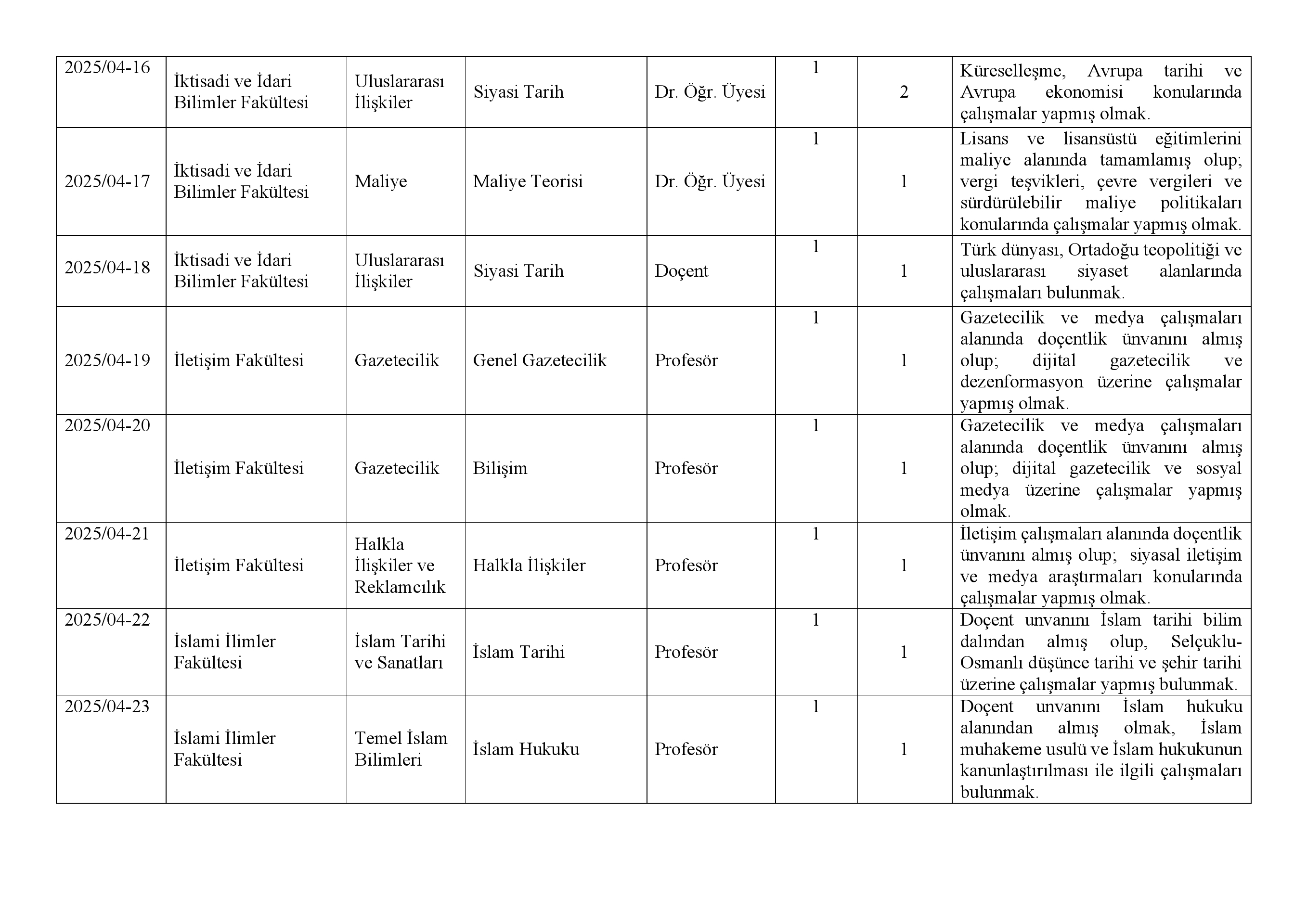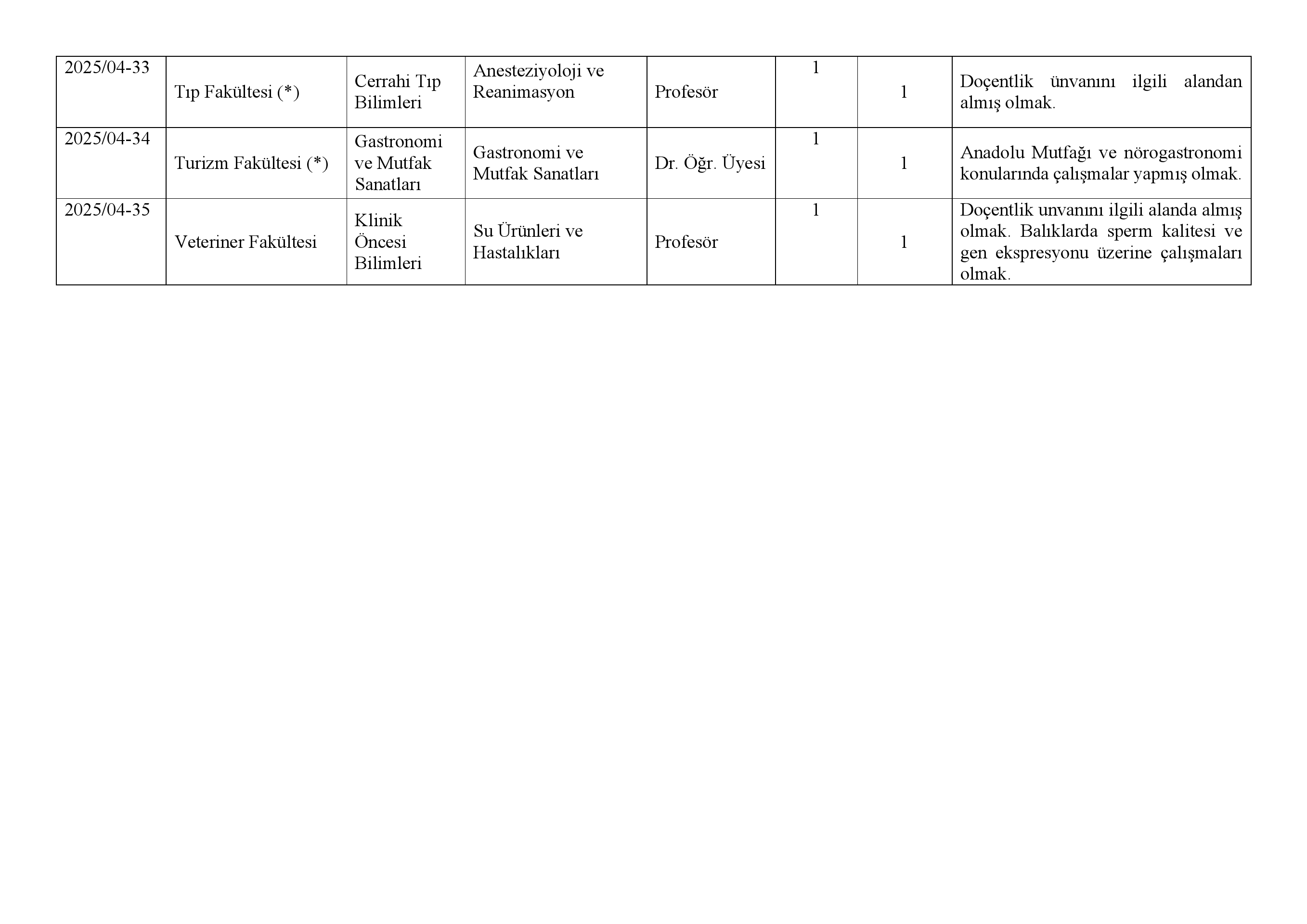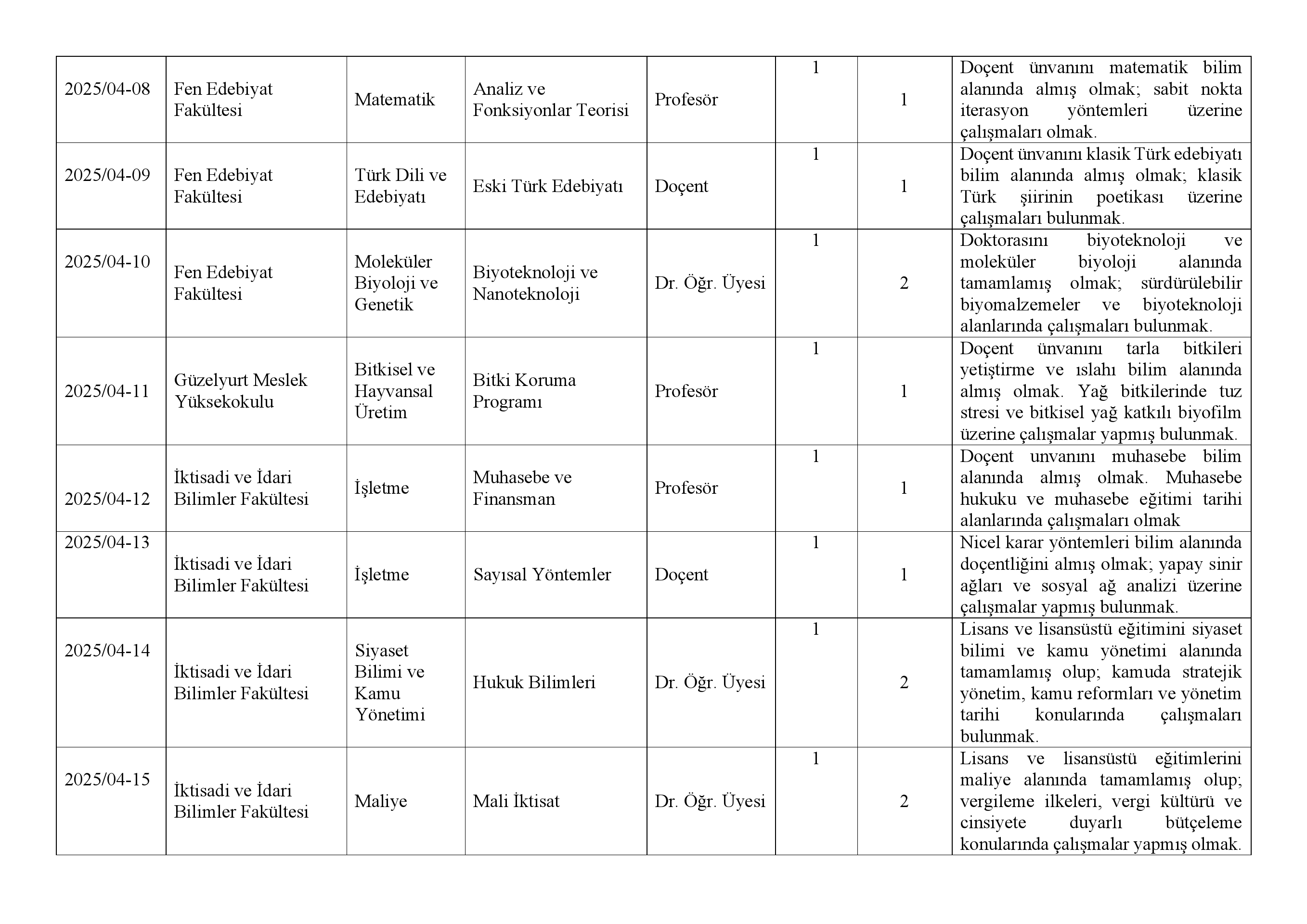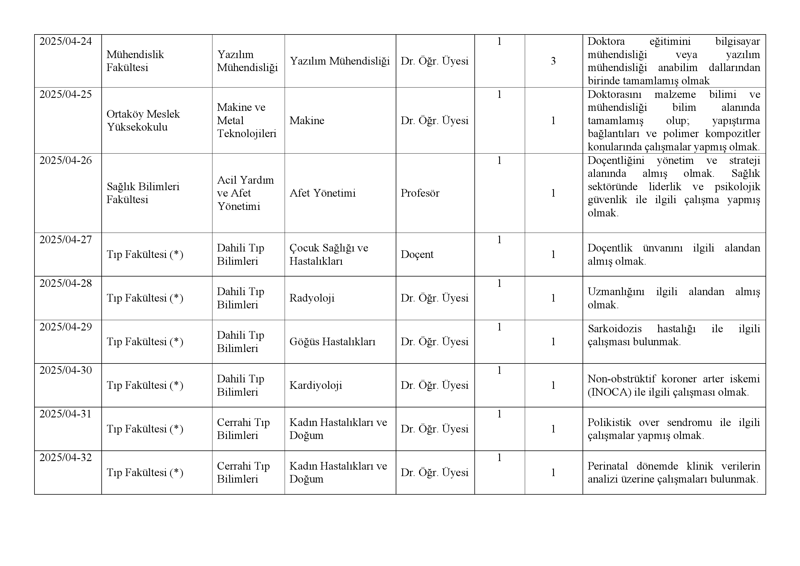 7) İlan edilen kadro ile ilgili güncel lisans üstü öğrenci belgesi olması gerekmektedir.