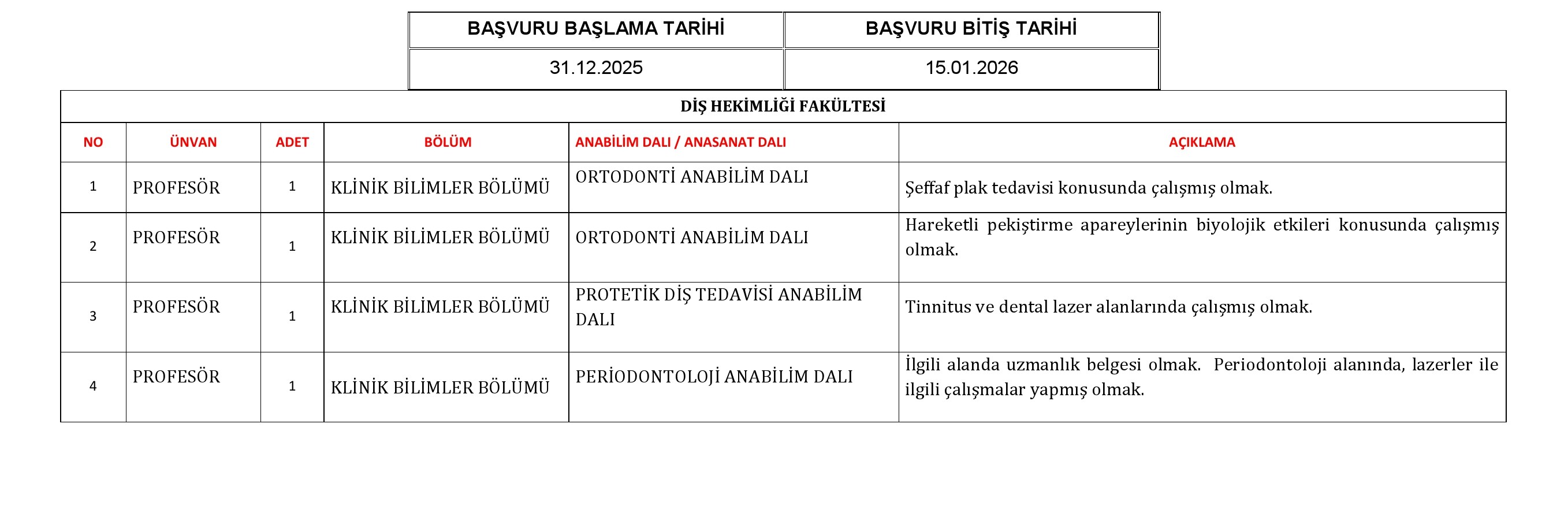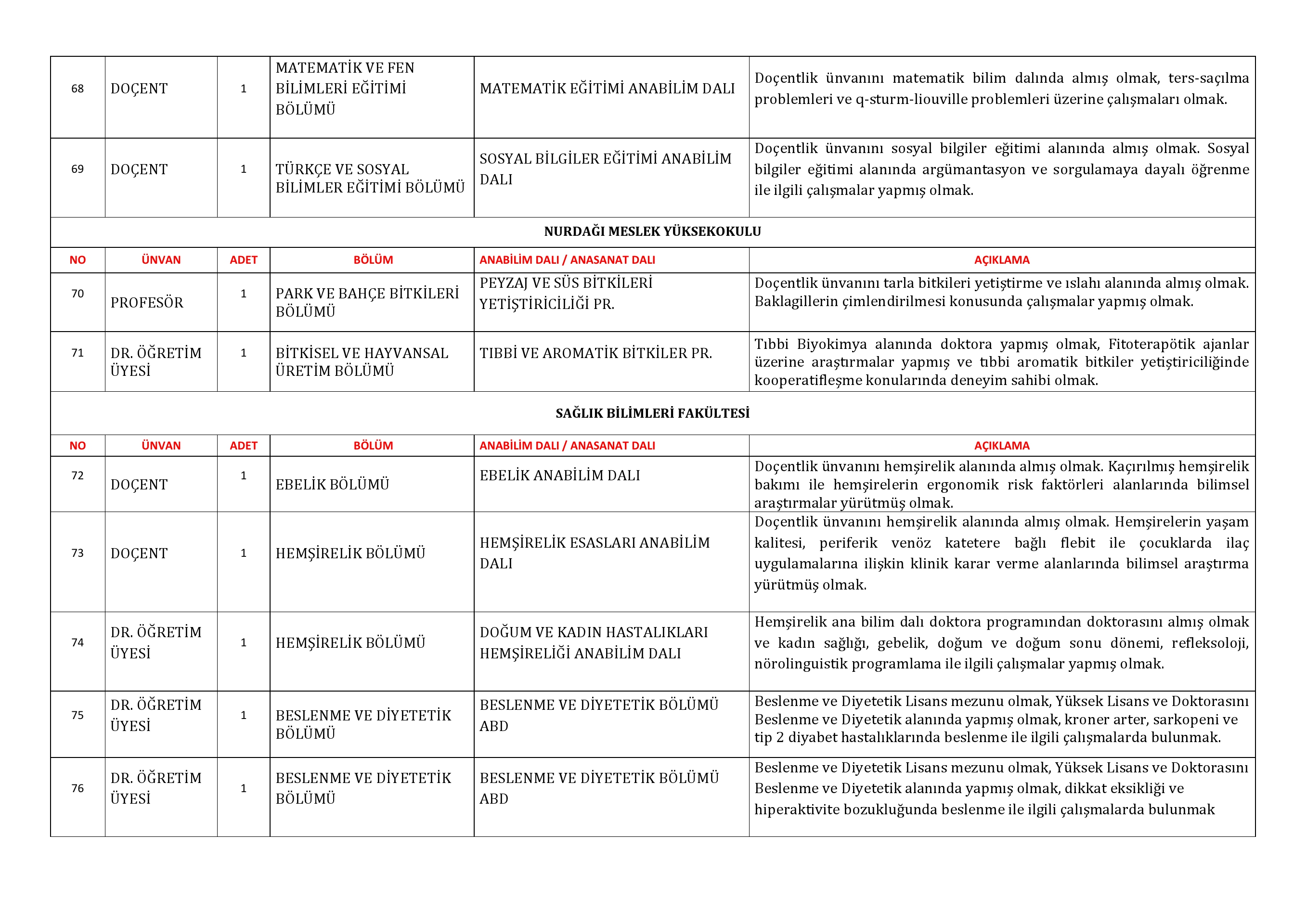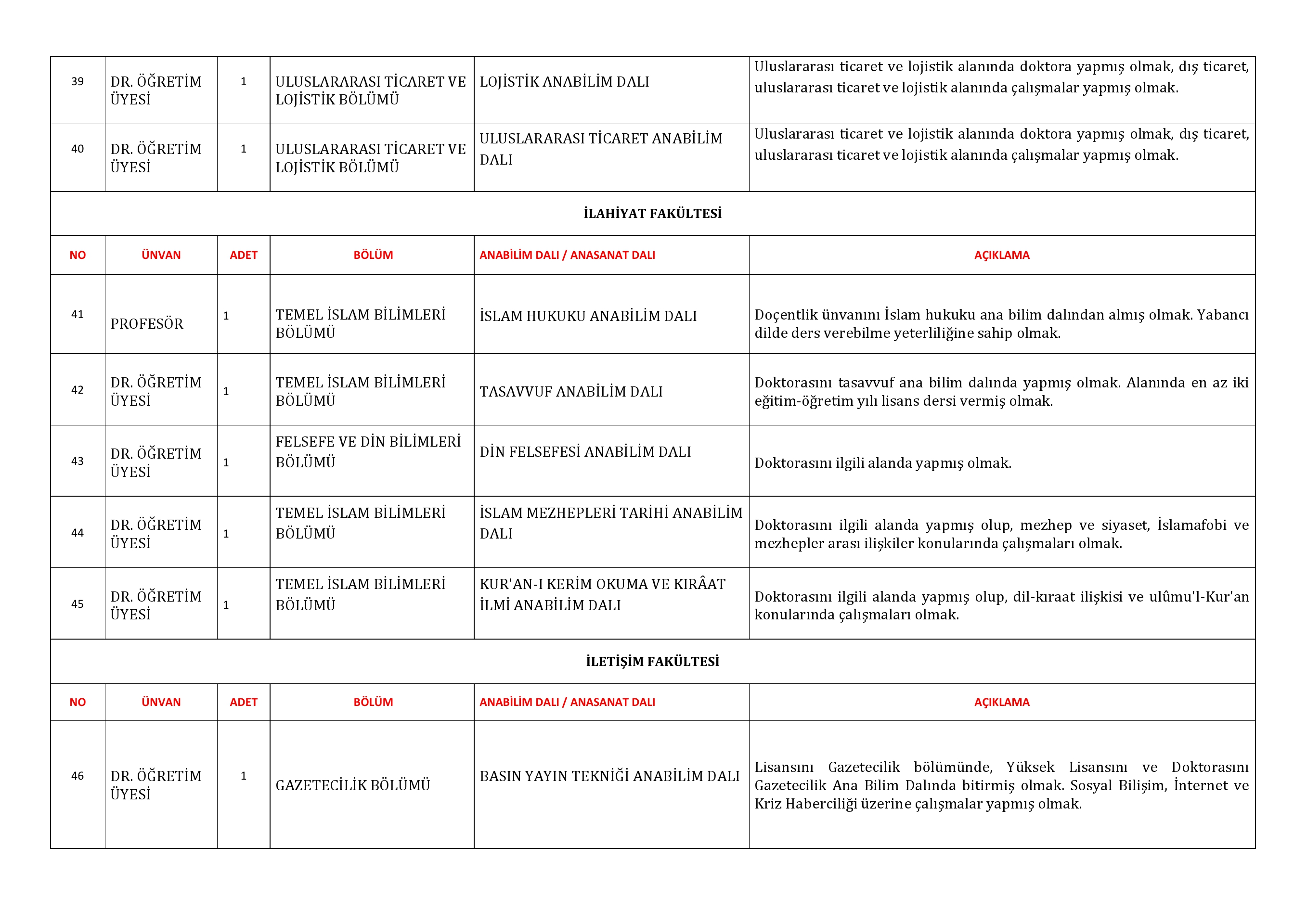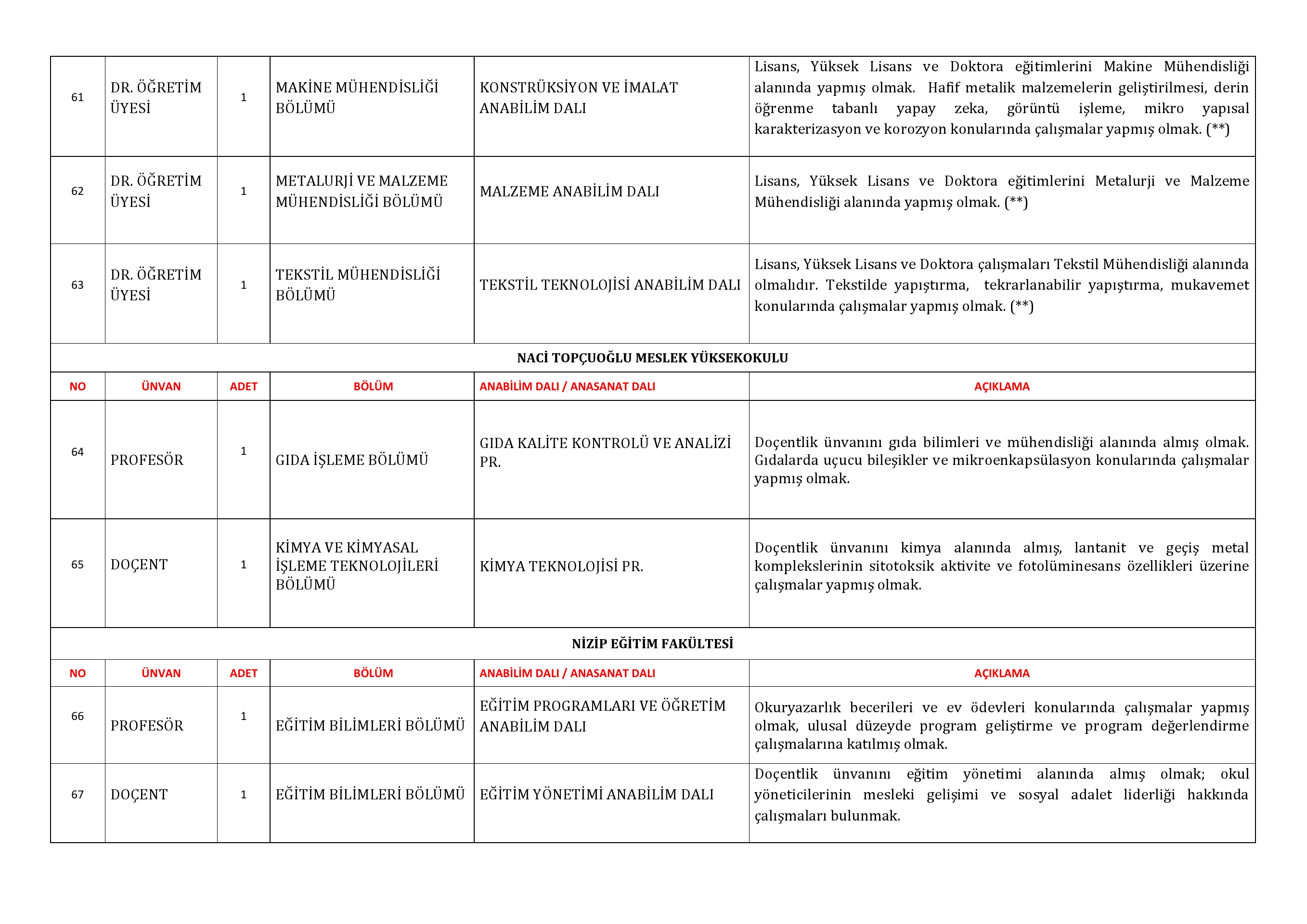 Üniversitemizin aşağıda belirtilen birimlerine, 2547 sayılı Kanun ile Öğretim Üyeliğine Yükseltilme ve Atanma Yönetmeliğinin ilgili maddeleri uyarınca öğretim üyesi alınacaktır.Tüm başvurularilanın Resmi Gazete 'de yayımlandığı tarihten itibaren15 gün içerisindehttps://gaunay.gantep.edu.tr/adresi üzerinden online olarak alınacak. "online başvuru" tamamlandı belgesi, 2 adet vesikalık fotoğraf ve 1 (bir) adet taşınabilir bellek ile şahsen veya vekaletname verilmiş vekil aracılığıile yapılan başvurular kabul edilecektir.