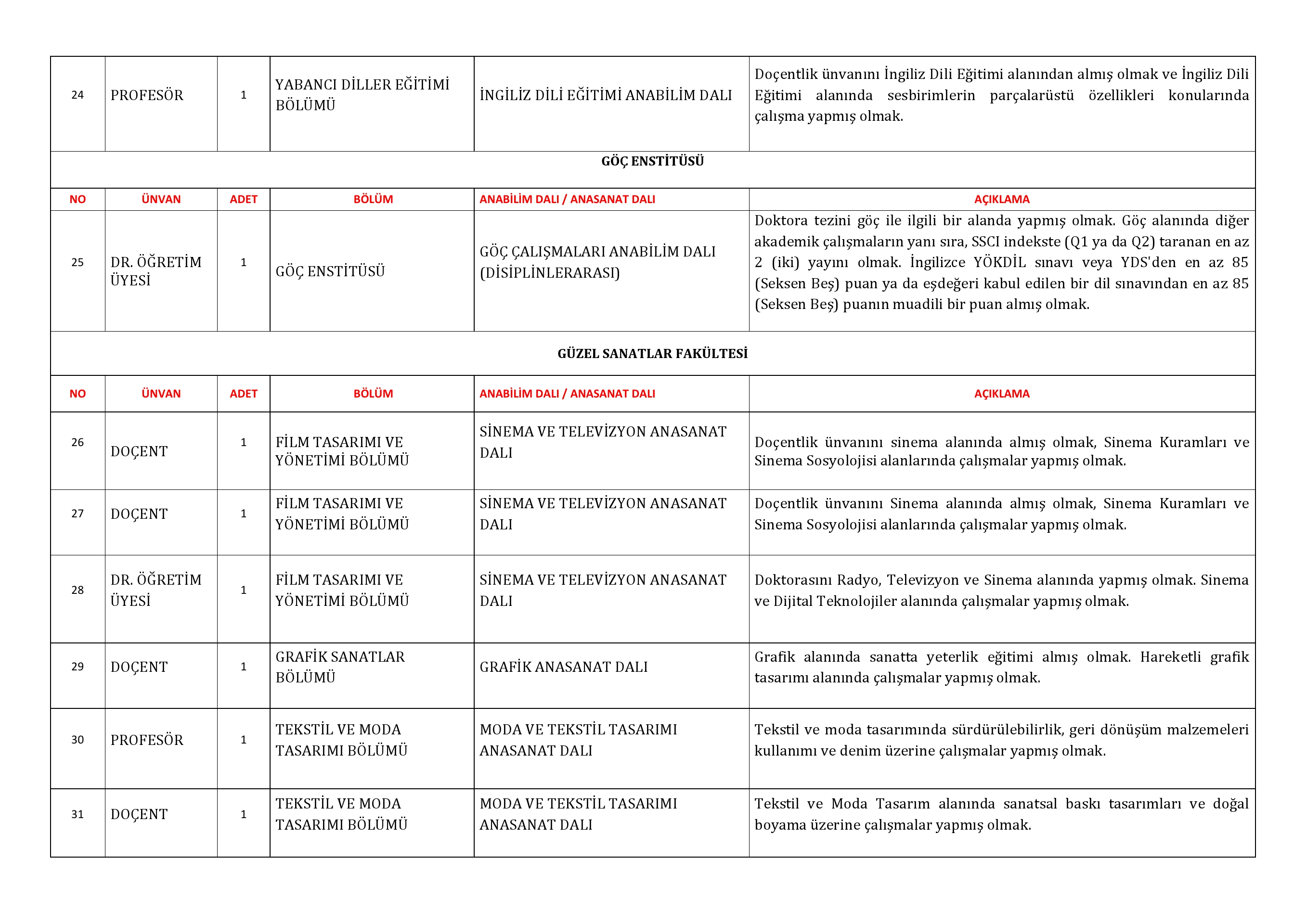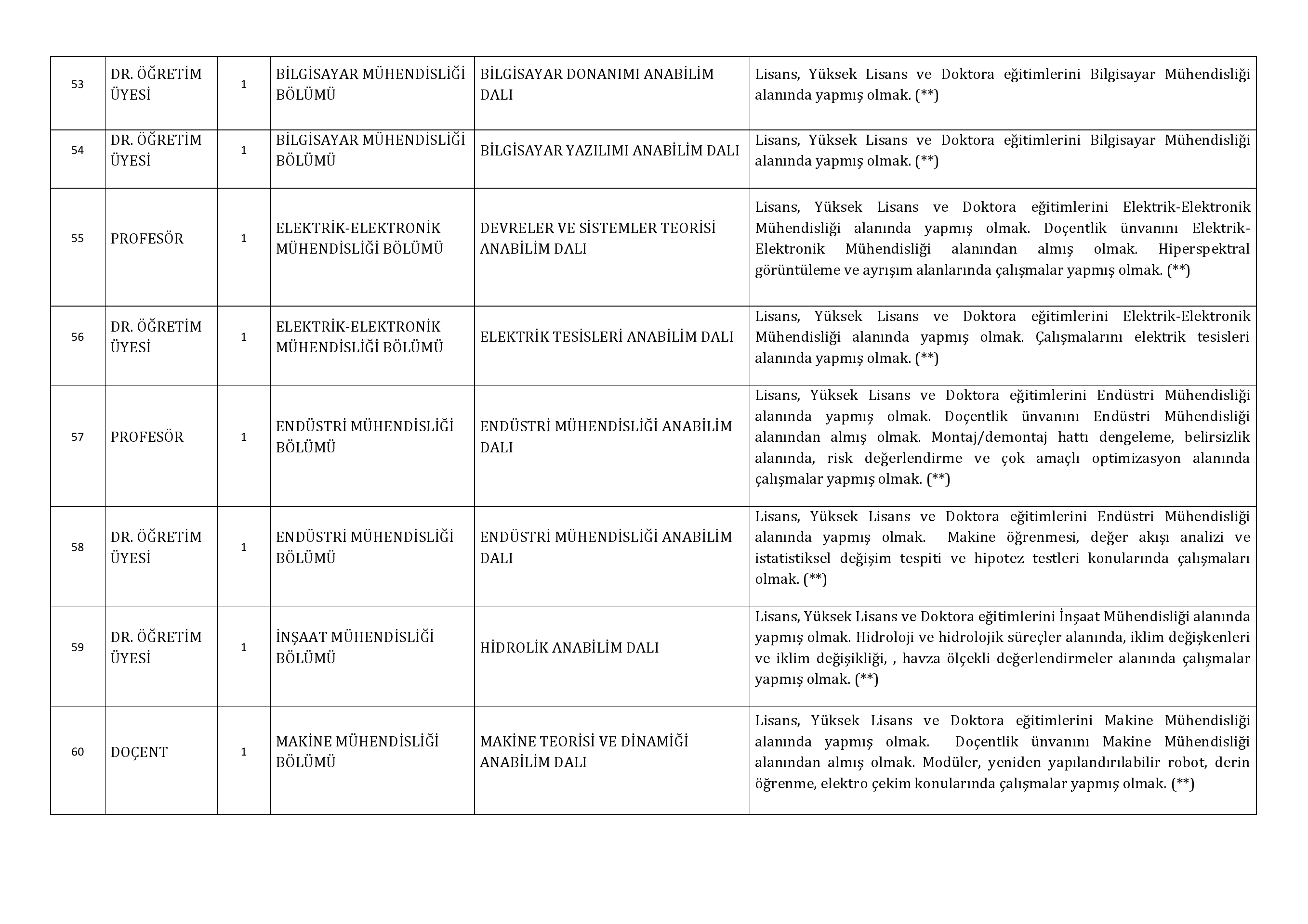 Adaylar, ilanda belirtilen kadrolardan en fazla 1 (bir) tanesine başvuru yapabilir. Birden fazla kadroya başvuran adayların bütün başvuruları geçersiz sayılacaktır.