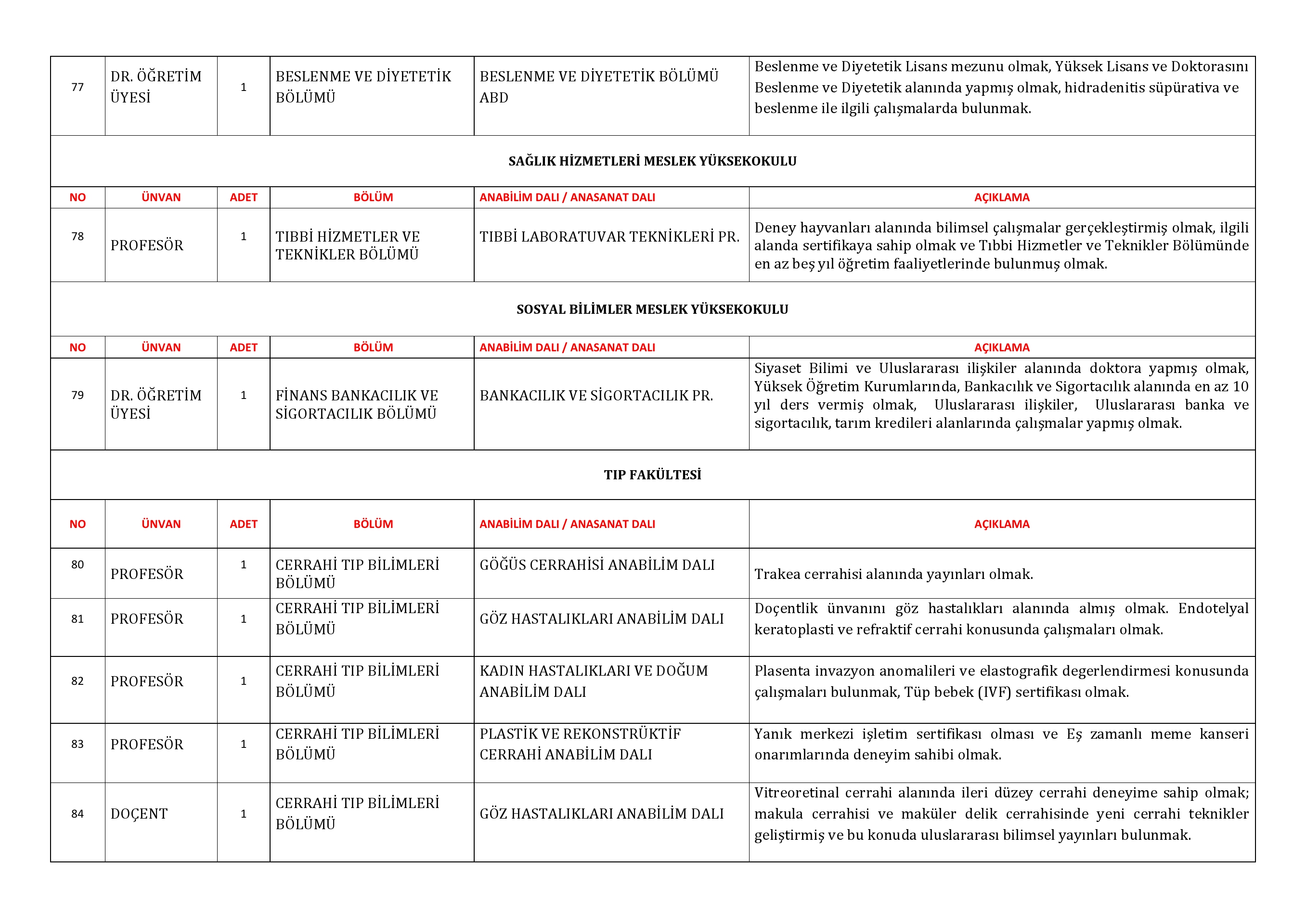 Üniversitemizin aşağıda belirtilen birimlerine; Öğretim Üyesi Dışındaki Öğretim Elemanı Kadrolarına Yapılacak Atamalarda Uygulanacak Merkezi Sınav ile Giriş Sınavlarına İlişkin Usul ve Esaslar Hakkında Yönetmelik, 2547 sayılı Yükseköğretim Kanunu ve 657 sayılı Devlet Memurları Kanunu'nun 48. Maddesi hükümleri uyarınca Öğretim Elemanı alınacaktır.