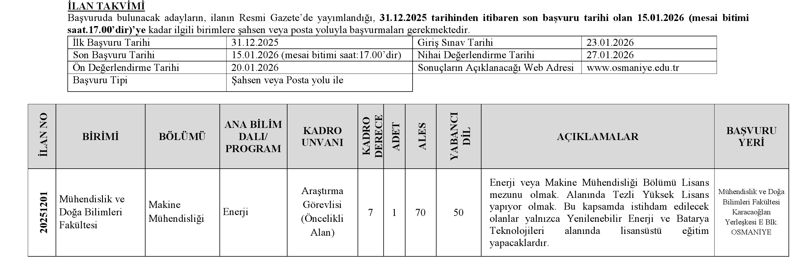 İlana ilişkin bilgiler, Üniversitemizin www.osmaniye.edu.tr internet adresinde yer almaktadır.