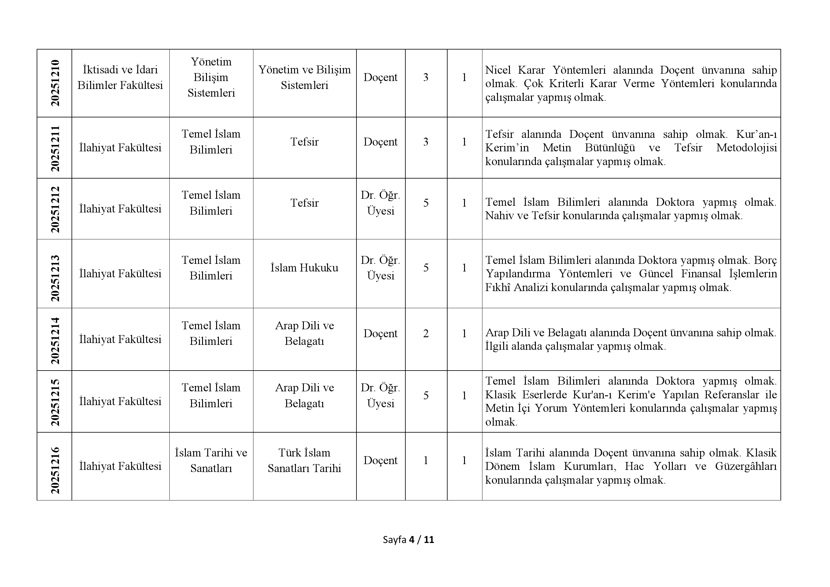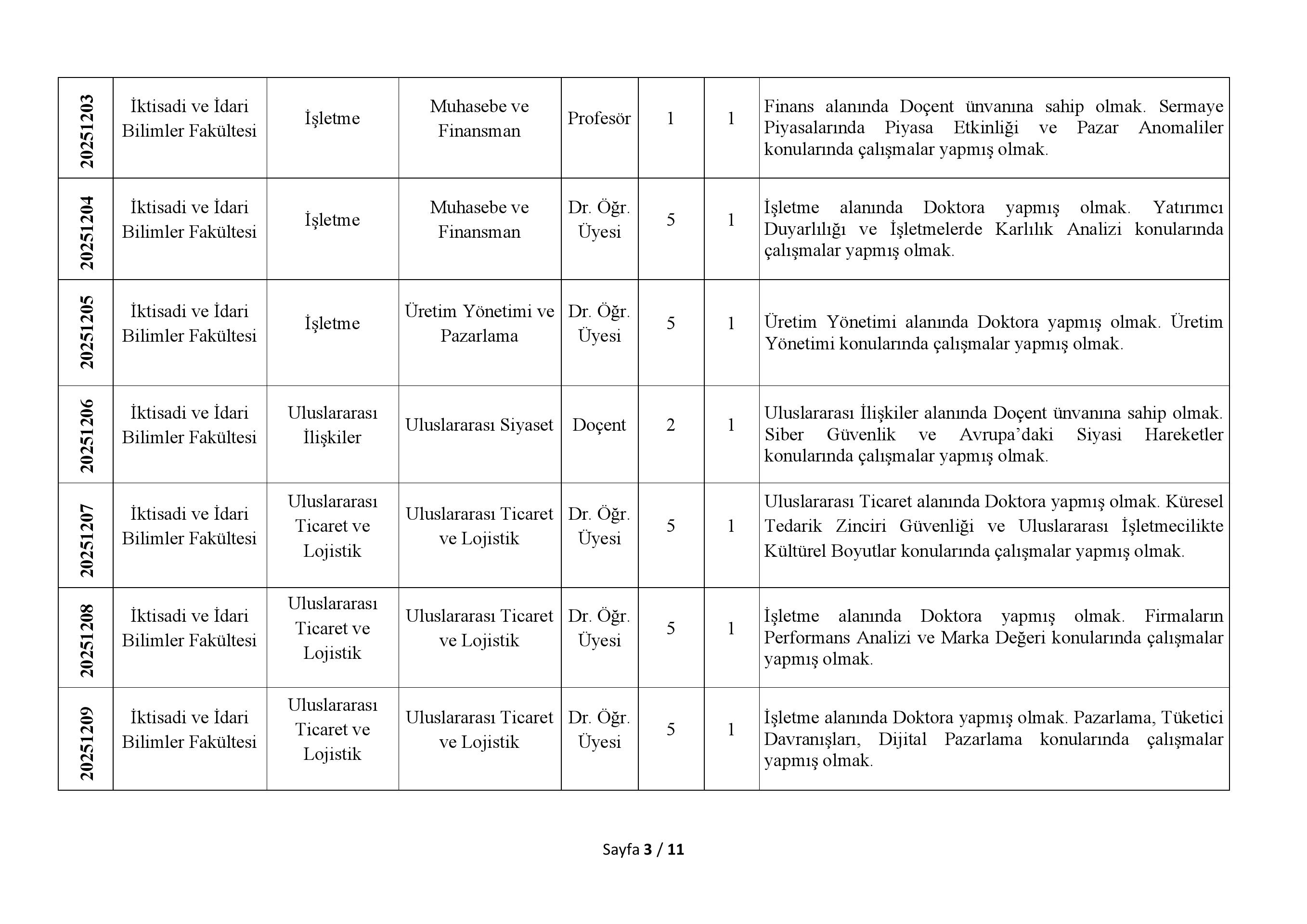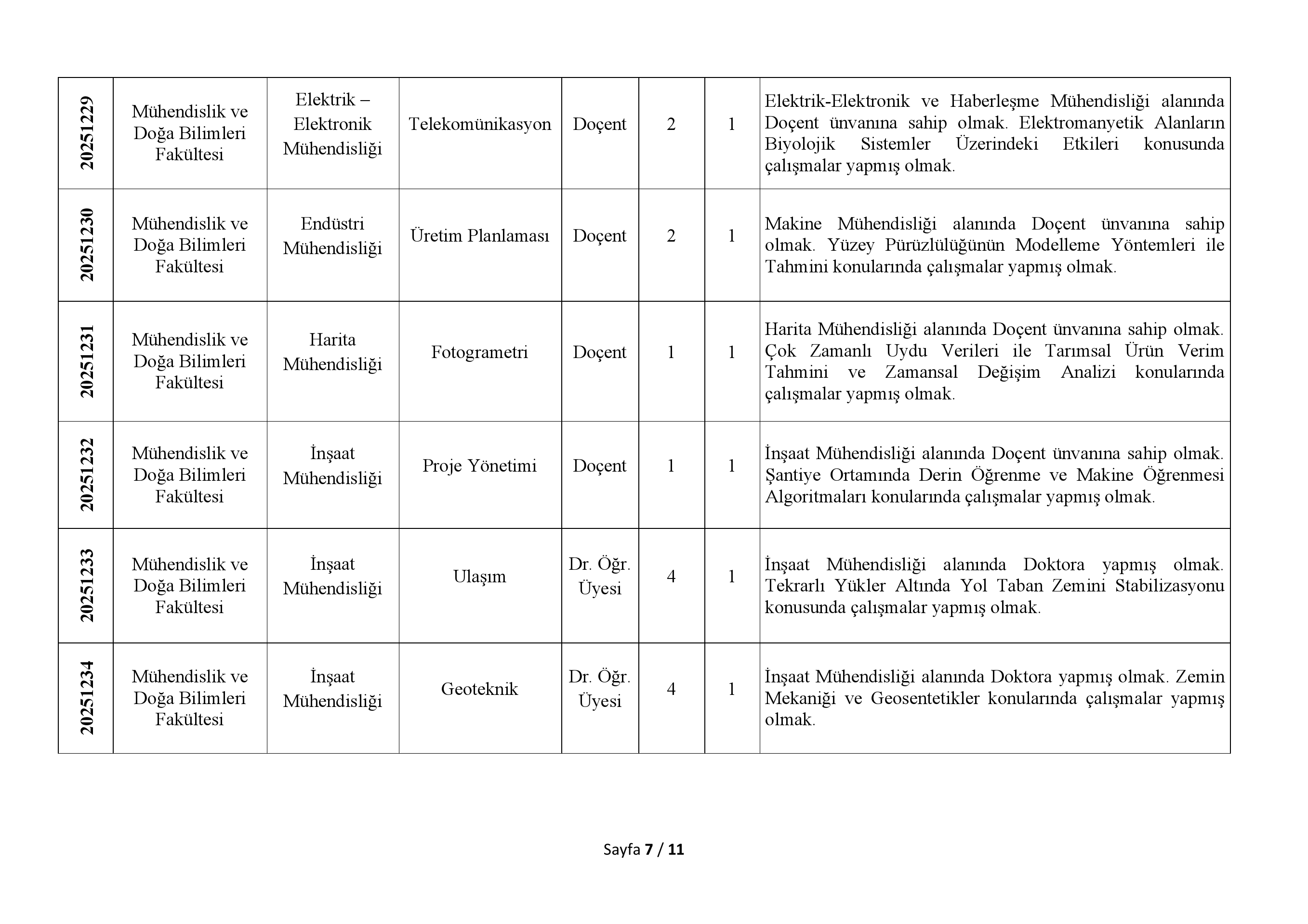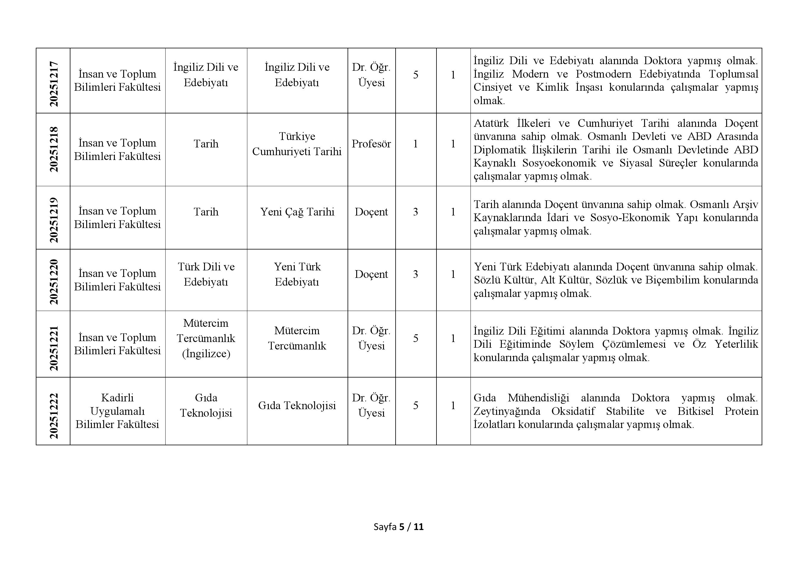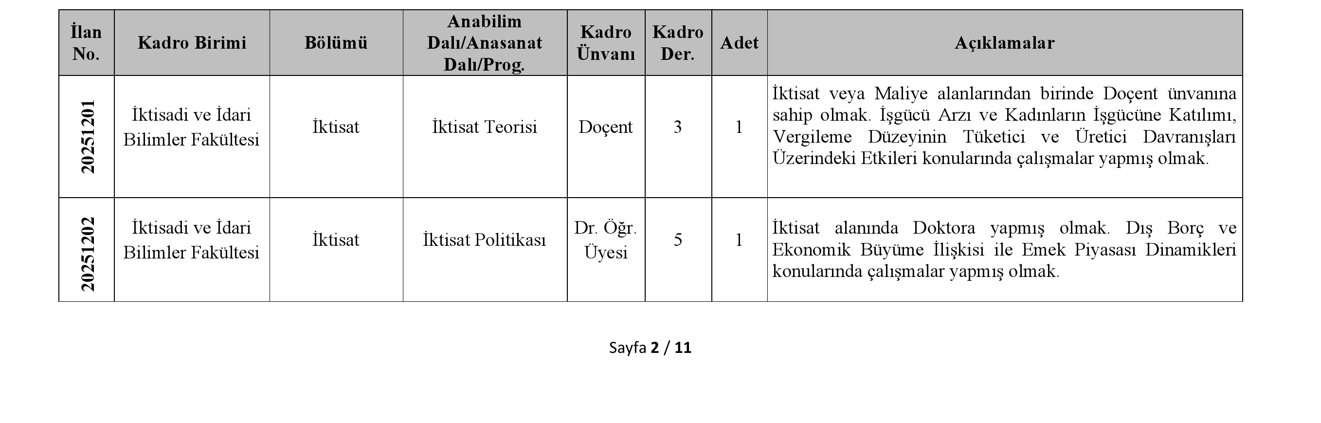 1-Öncelikli Alan Araştırma Görevlisi kadrosuna başvuracak adaylarda yüksek lisans veya doktora öğrencisi olmak şartı aranır. Adayların azami eğitim (lisansüstü) süresini aşmamış olması gerekir.