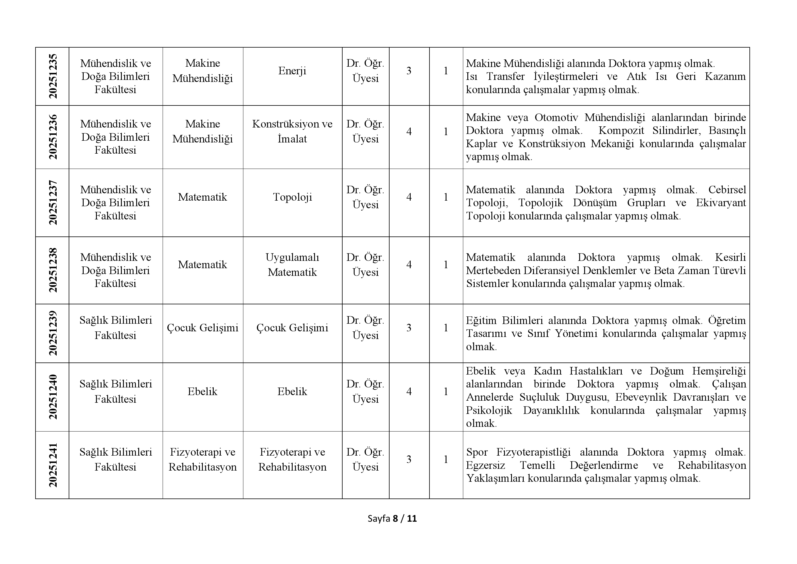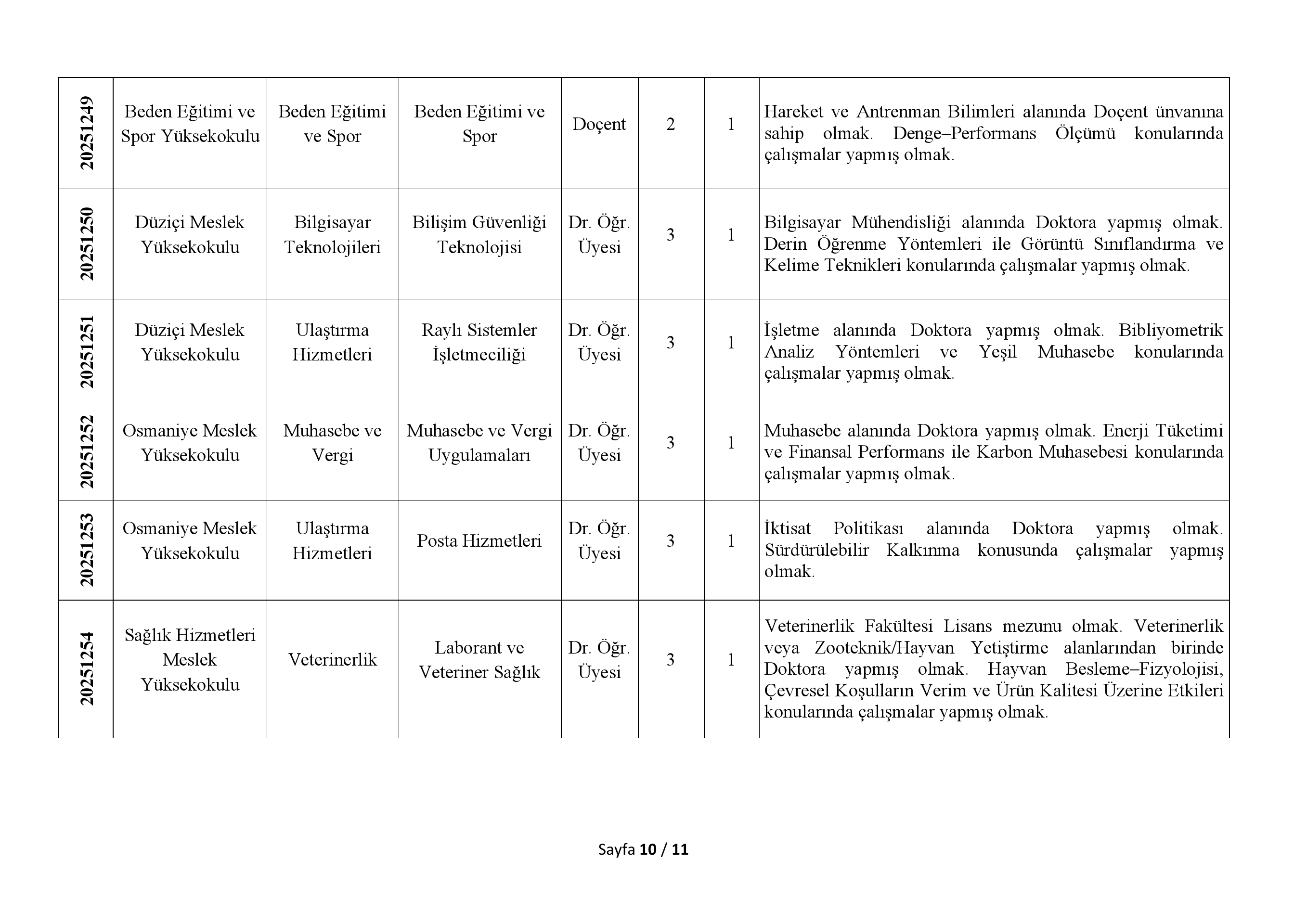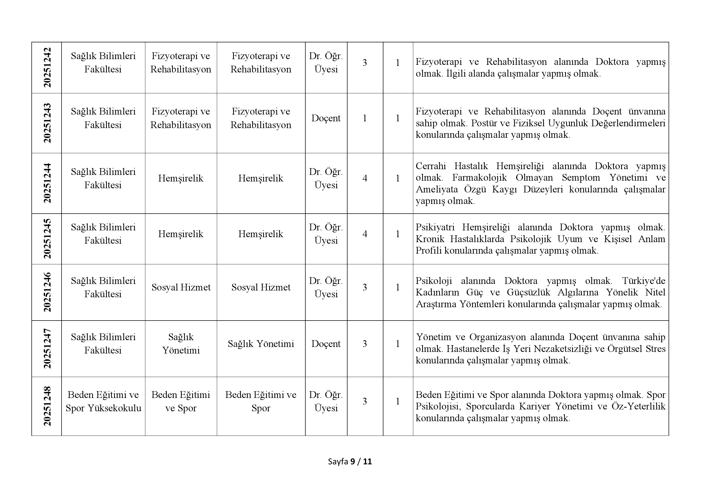 > 2547 Sayılı Kanun'un Ek 38. maddesi uyarınca belirlenen %30'luk kota kapsamında, başvuru yapılabilecek Doktor Öğretim Üyesi kadrosu