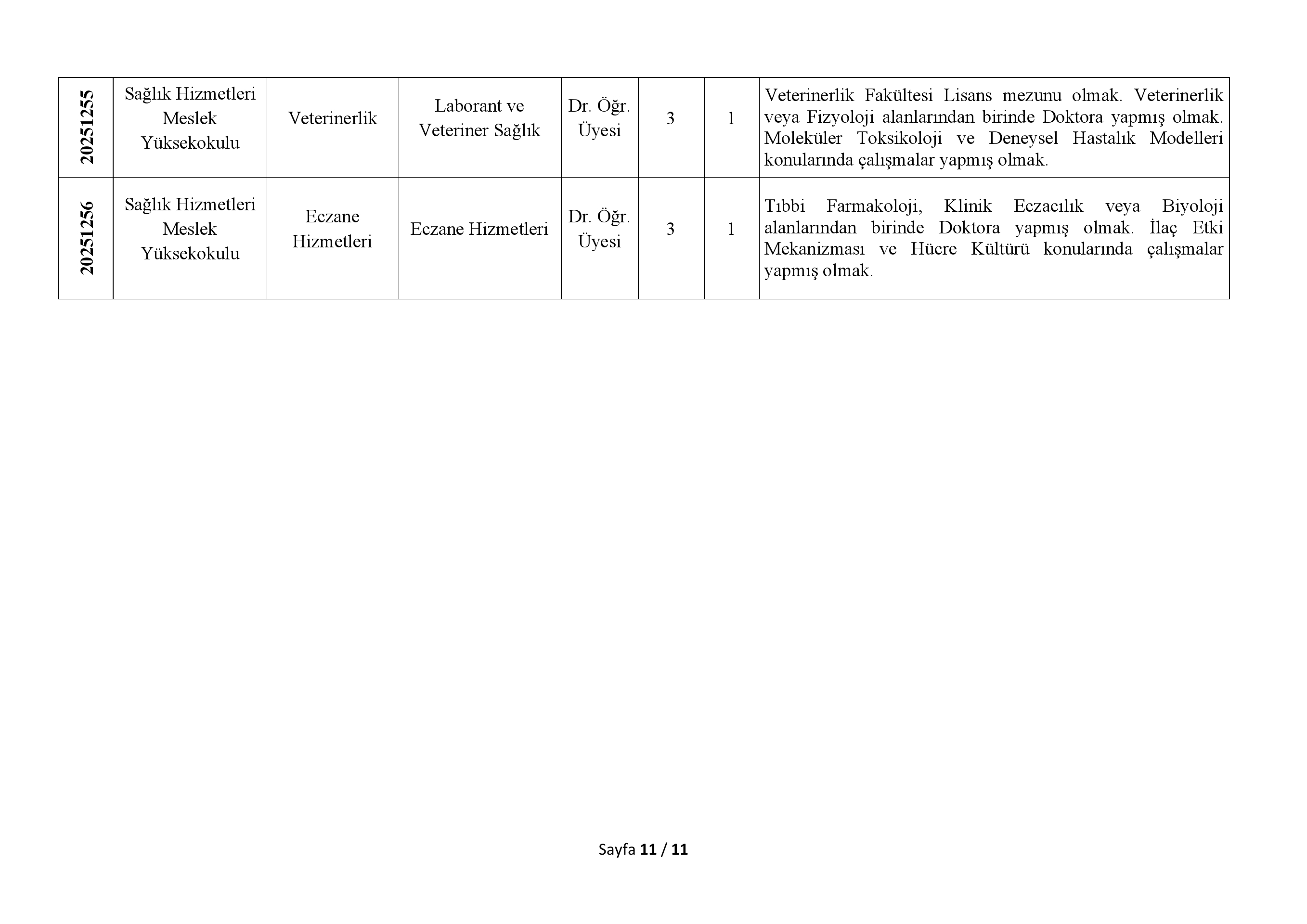 > Başvuru süresi, ilanın Resmi Gazete'de yayın tarihi olan 31.12.2025 ve son başvuru tarihi olan 15.01.2026 tarihi mesai bitimine kadardır. Belirtilen koşulları taşımayan ve süresi içinde yapılmayan başvurular kabul edilmeyecektir.