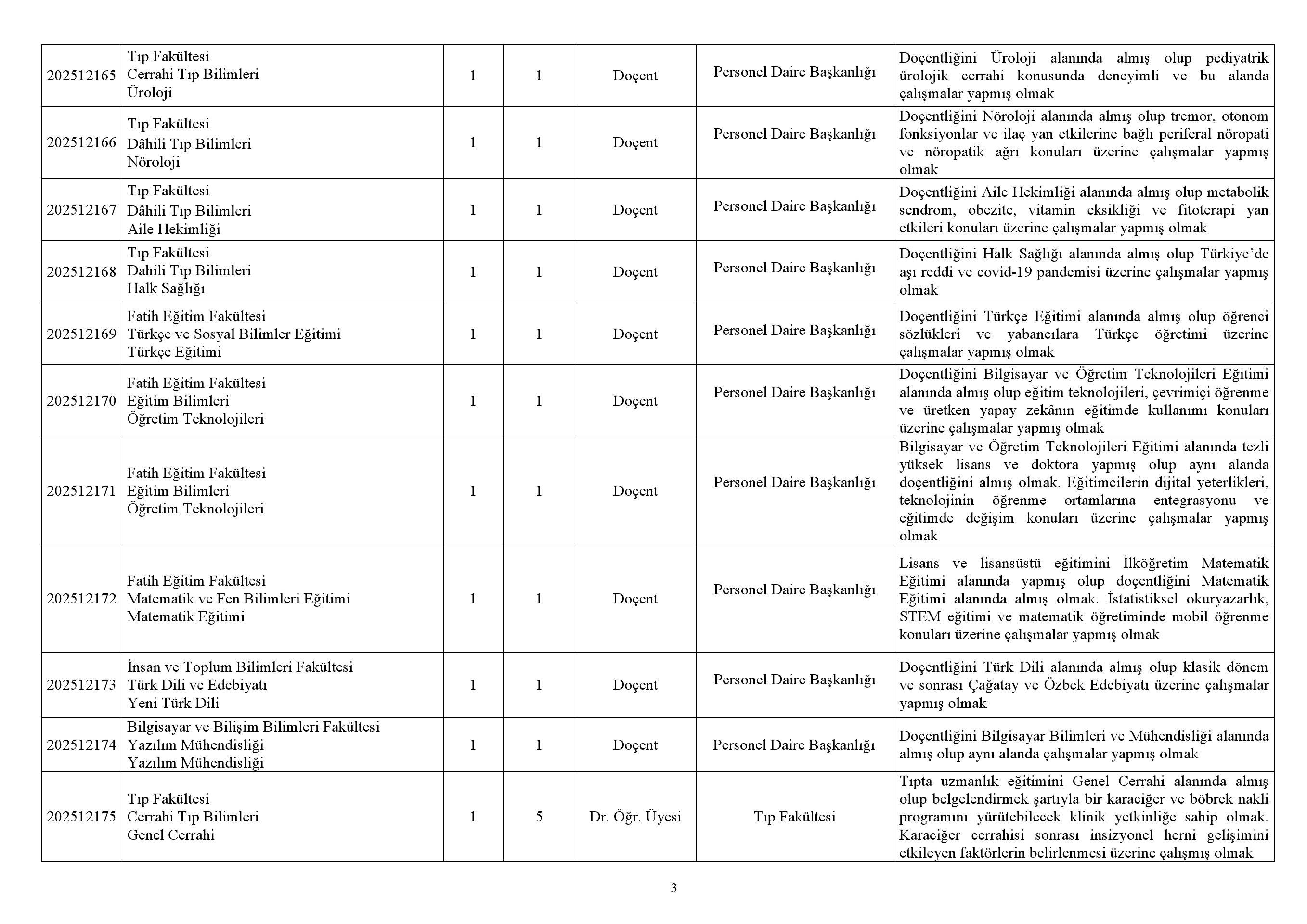 b) Doçent Kadroları İçin;