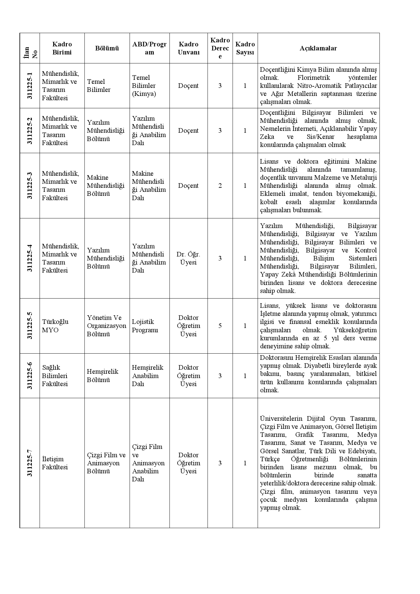 l) Üniversitemiz gerekli durumlarda ilanın her aşamasında iptal ve/veya değişiklik yapma hakkına sahiptir.