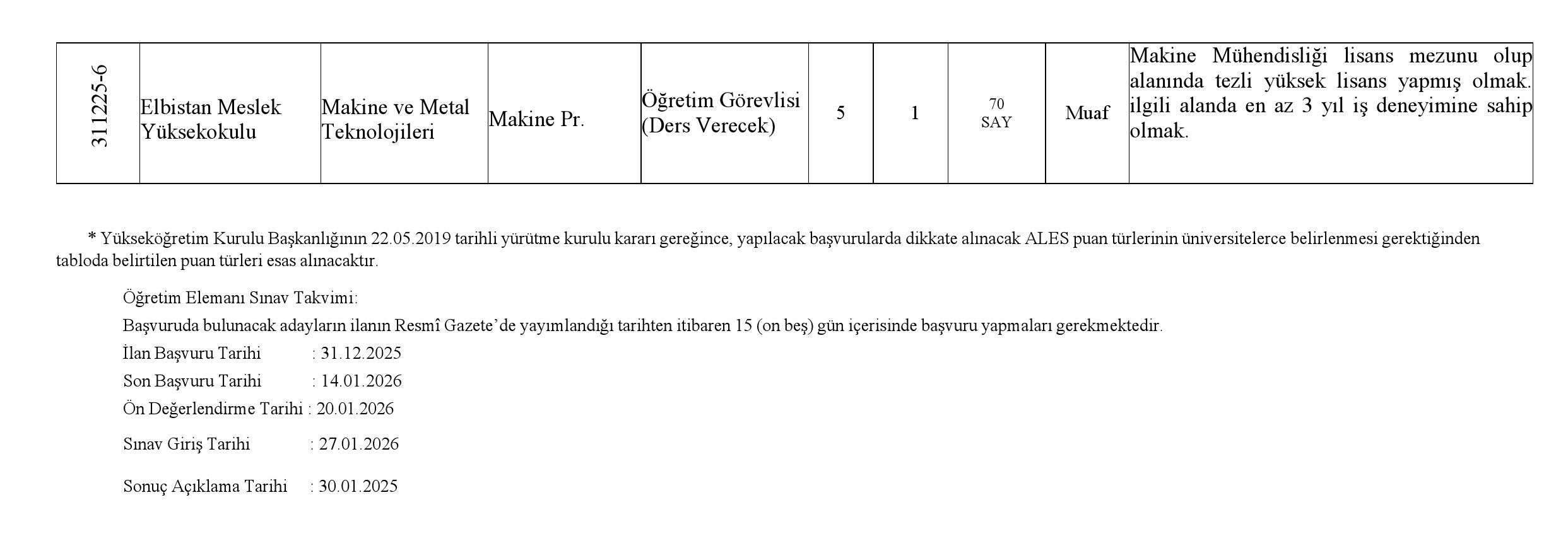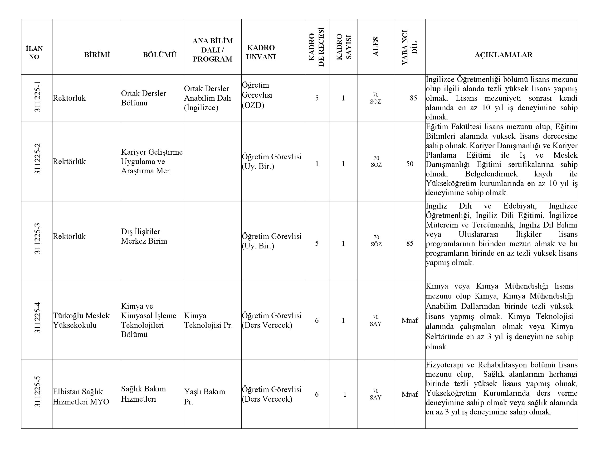 Öğretim Elemanı Kadrolarına Yapılacak Atamalarda Uygulanacak Merkezi Sınav ile Giriş Sınavlarına İlişkin Usul ve Esaslar Hakkında Yönetmelik"in ilgili maddeleri uyarınca Öğretim Elemanı alınacaktır.