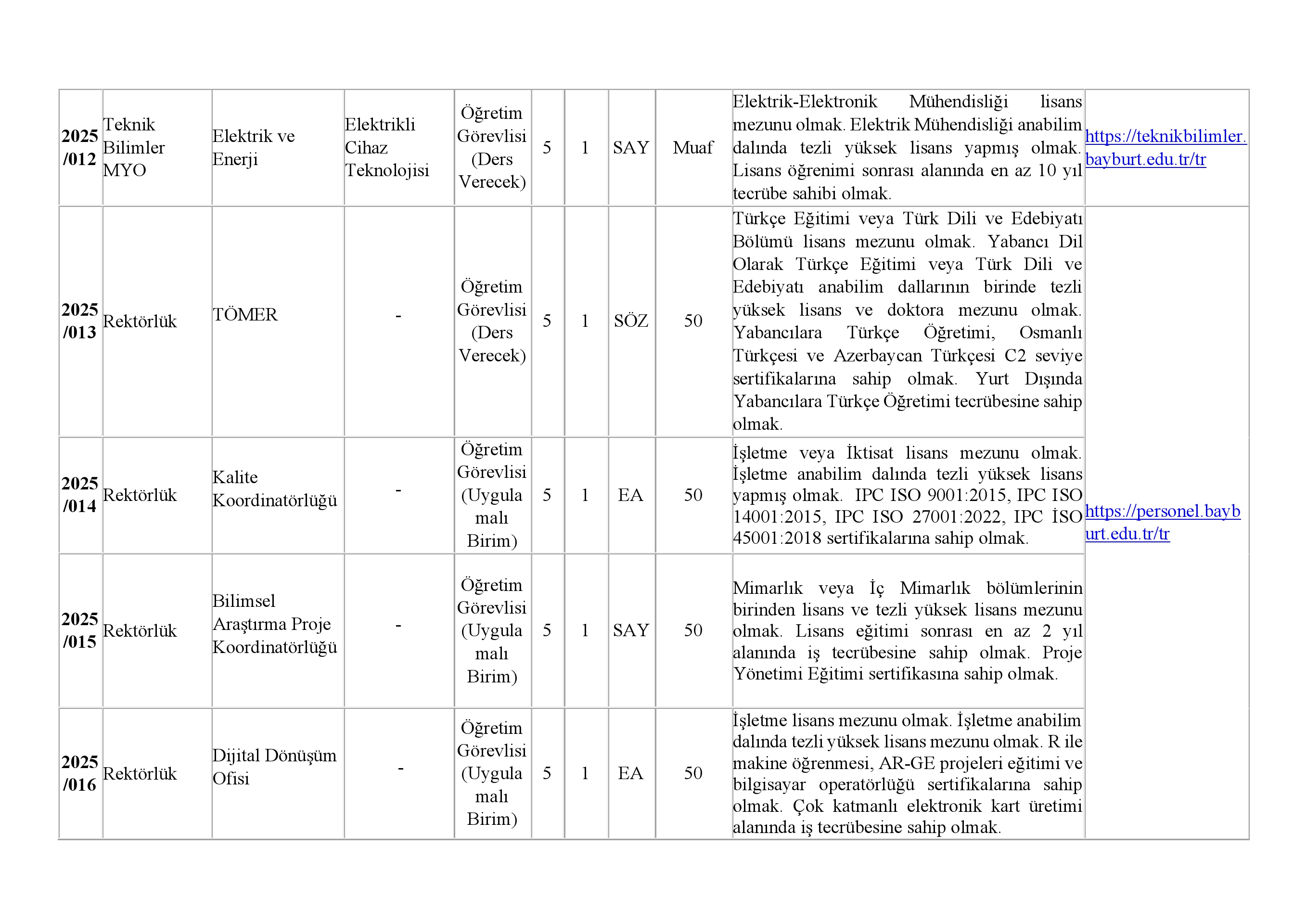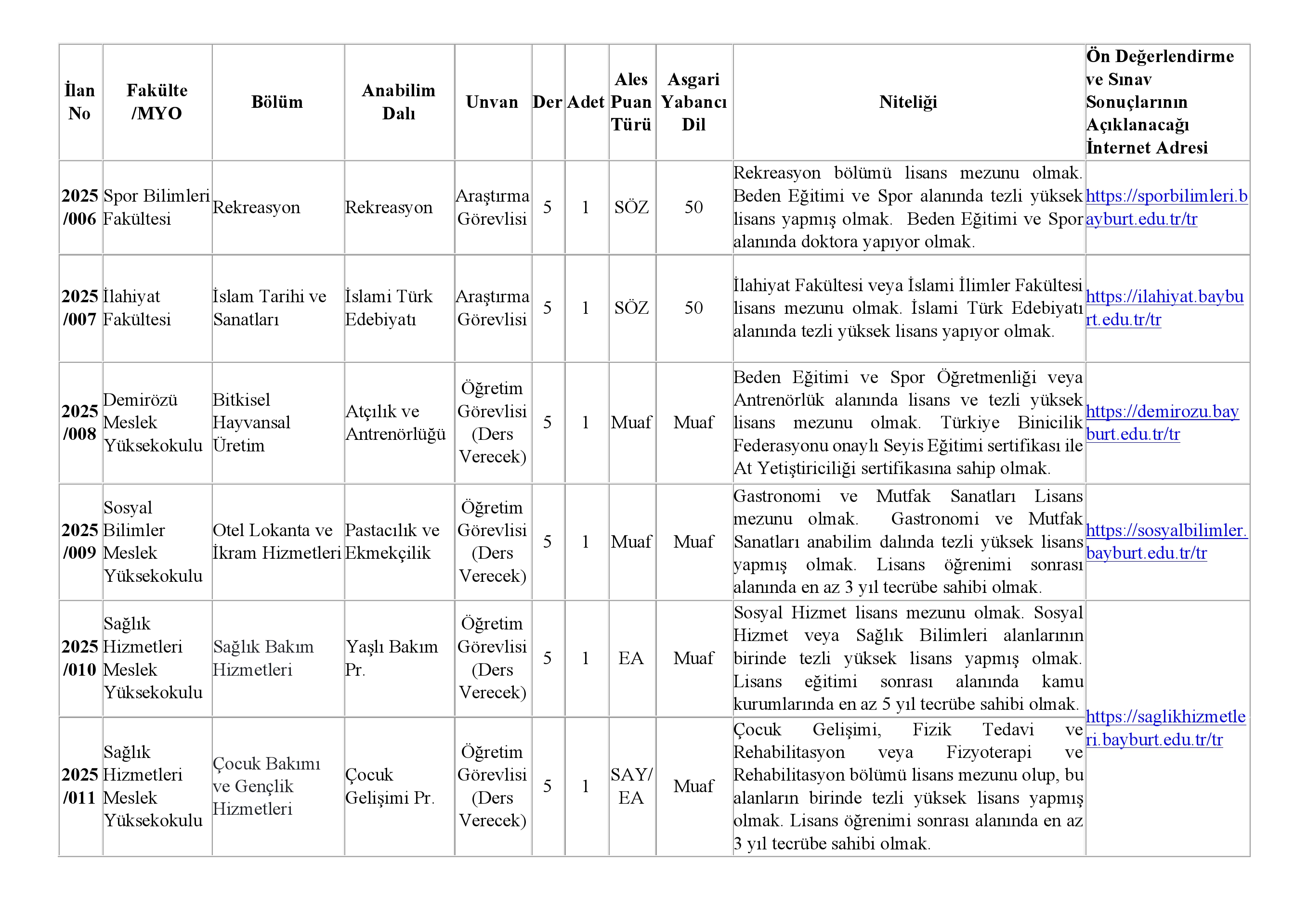 Bayburt Üniversitesi Öğretim Üyesi ve Elemanı Alım İlanı. Son başvuru tarihi 14 Ocak 2026
