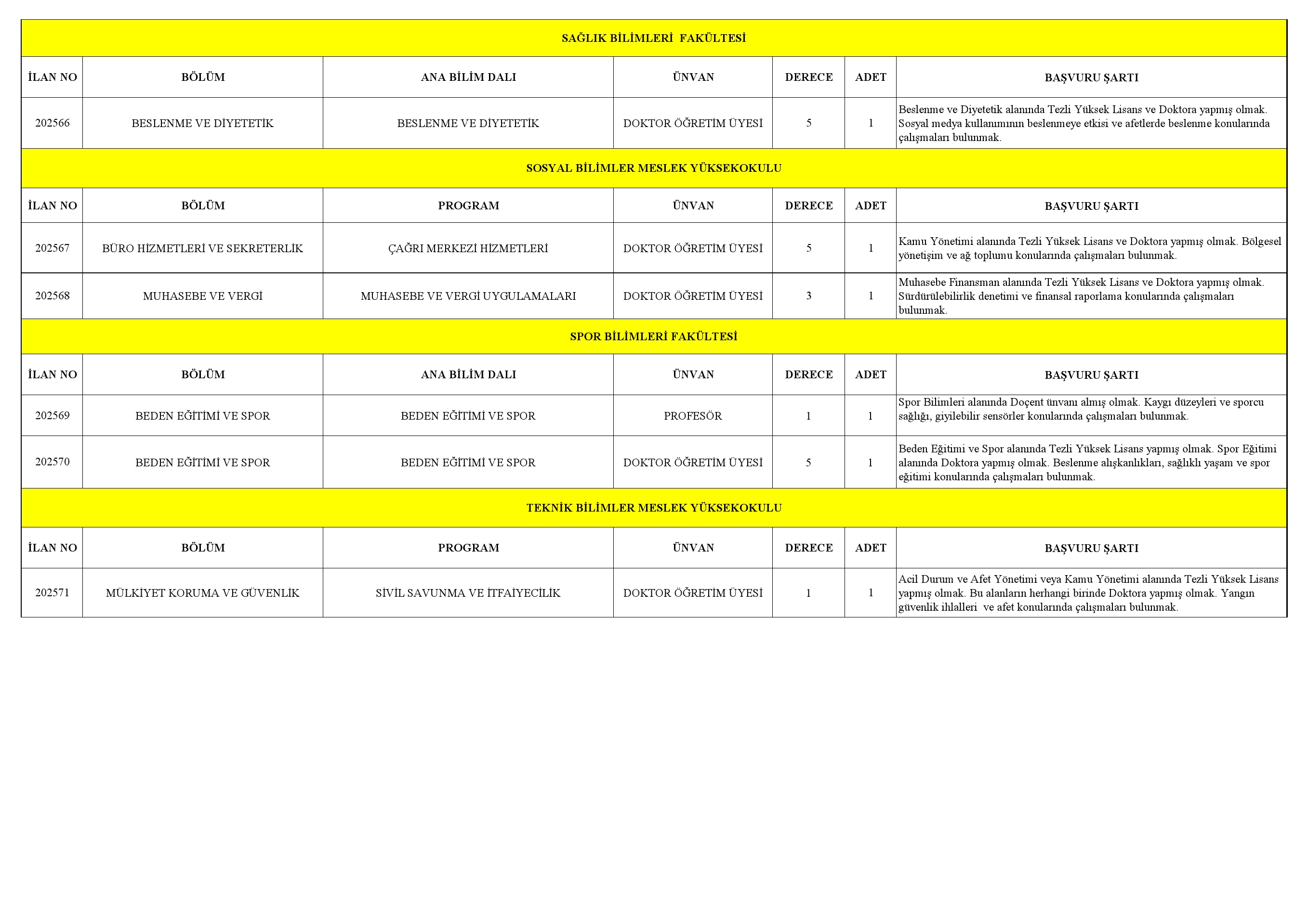 3- Rektörlük Turizm İhtisaslaşma Koordinatörlüğü Biriminde istihdam edilecek öğretim üyesi dışındaki öğretim elemanlarında yabancı dil puanı, Öğretim Üyesi Dışındaki Öğretim Elemanı Kadrolarına Yapılacak Atamalarda Uygulanacak Merkezi Sınav ile Giriş Sınavlarına İlişkin Usul ve Esaslar Hakkında Yönetmelik'in 6. Maddesinin 2. Fıkrası uyarınca; Üniversitemiz Senatosu'nun 26.12.2025 tarihli ve 2025/34-1 sayılı Senato Kararı ile 65 (Altmış Beş) olarak belirlenmiştir.