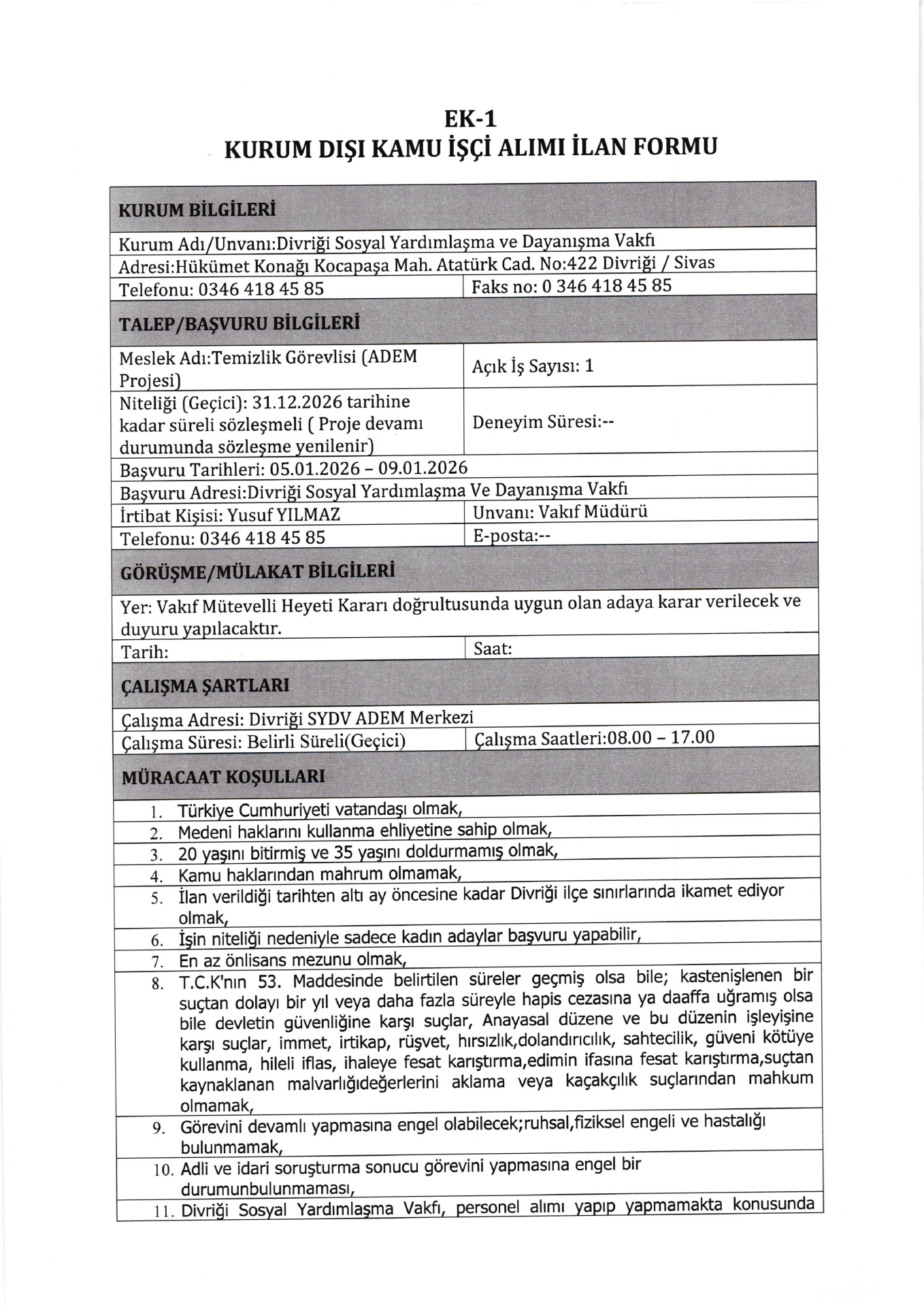 Ana sayfaSYDV İlanlarıAna sayfaGeçici İşçi İlanları Sivas Divriği SYDV Geçici 1 İşçi Alacak Sivas Divriği SYDV Geçici 1 İşçi Alacak. Son başvuru tarihi 9 Ocak 2026 Kaynak : İşkur İlan Giriş : 06 Ocak 2026 04:33, Son Güncelleme : 06 Ocak 2026 04:46 Yazdır Yorumlar (0) Abone Ol