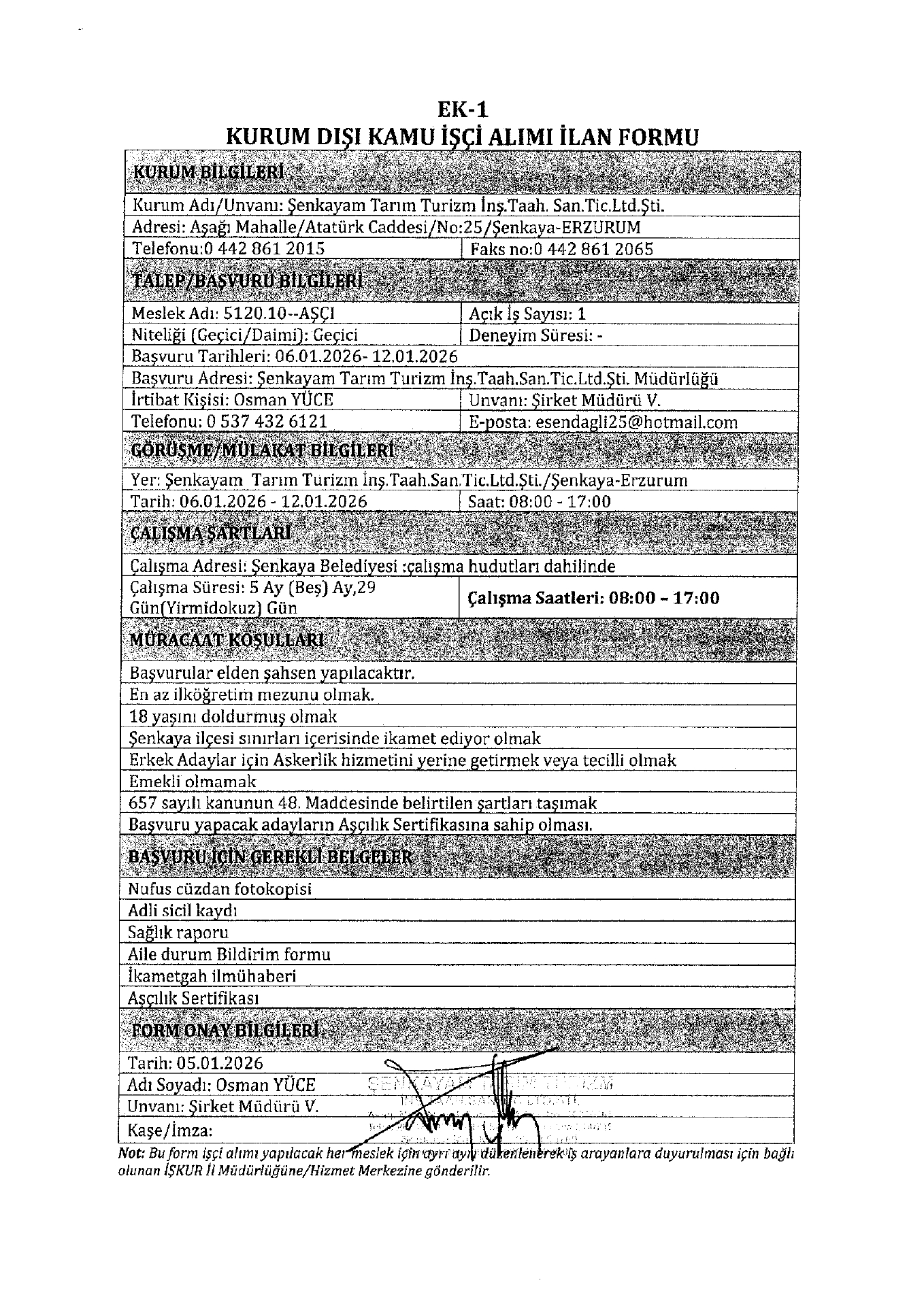 Ana sayfaGeçici İşçi İlanları Erzurum Şenkayam Tarım Geçici 11 İşçi Alacak Erzurum Şenkayam Tarım Geçici 11 İşçi Alacak. Son başvuru tarihi 12 Ocak 2026 Kaynak : İşkur İlan Giriş : 06 Ocak 2026 23:45, Son Güncelleme : 06 Ocak 2026 23:40 Yazdır Yorumlar (0) Abone Ol