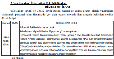 Afyon Kocatepe Üniversitesi Rektörlüğünden: