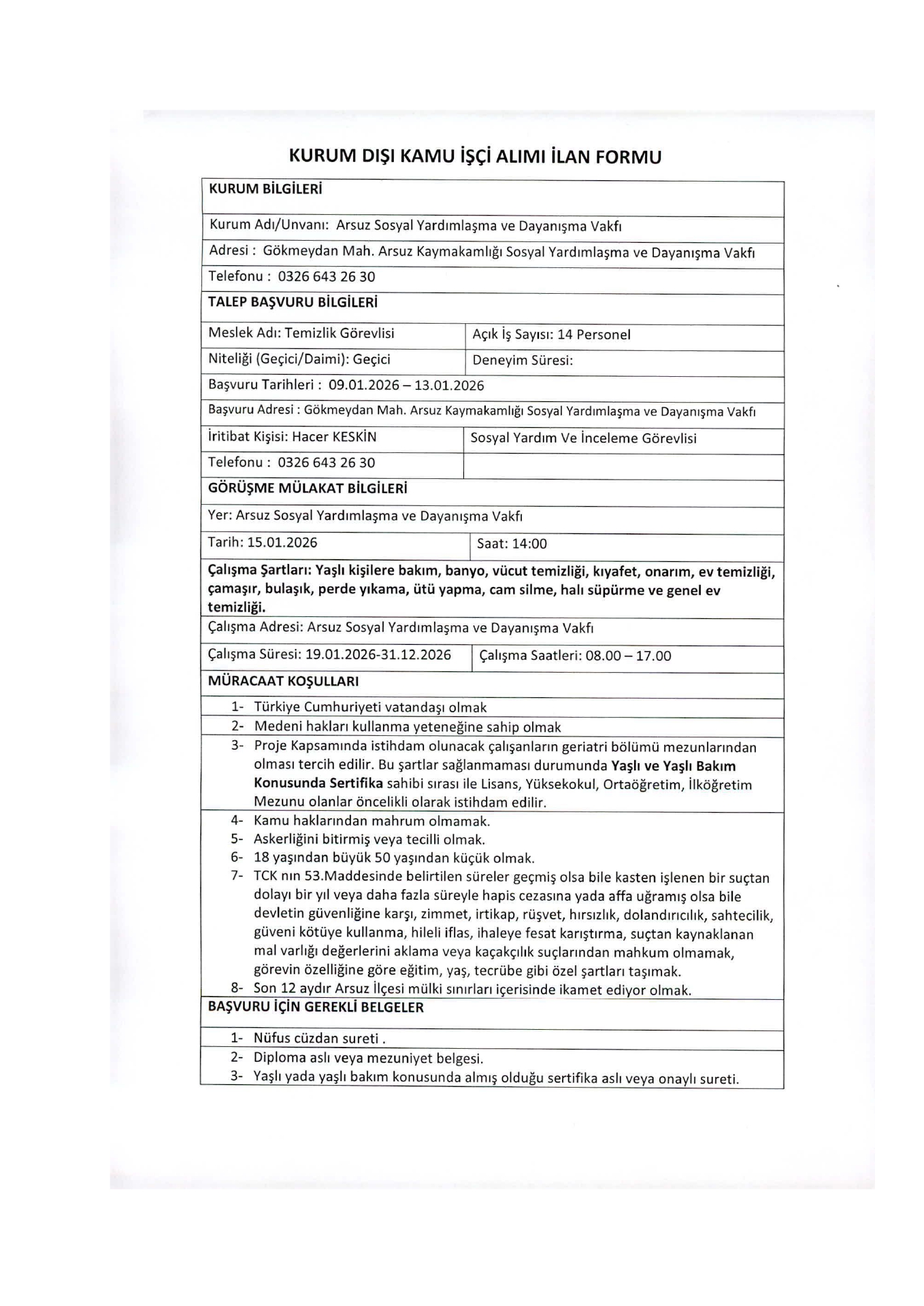 Ana sayfaSYDV İlanlarıAna sayfaGeçici İşçi İlanları Arsuz SYDV Geçici 14 İşçi Alacak Arsuz SYDV Geçici 14 İşçi Alacak. Son başvuru tarihi 13 Ocak 2026 Kaynak : İşkur İlan Giriş : 10 Ocak 2026 00:12, Son Güncelleme : 10 Ocak 2026 00:23 Yazdır Yorumlar (0) Abone Ol