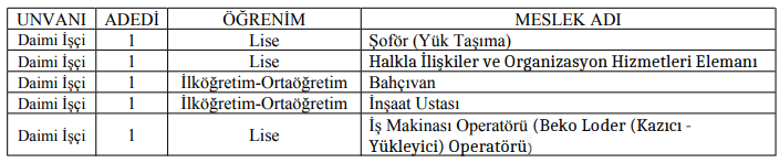 5 ADET DAİMİ İŞÇİ ALIMI YAPILACAKTIR.
