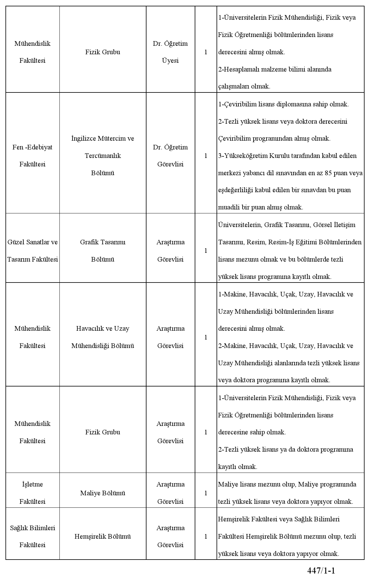 b) Araştırma Görevlileri İçin: Yükseköğretim Kurulu tarafından kabul edilen merkezi yabancı dil sınavından yabancı dille eğitim yapılan bölümler için en az 70 puan, Türkçe eğitim yapılan bölümler için en az 50 puan, dil alanında görevlendirilen araştırma görevlileri için en az 80 puan veya eşdeğerliliği kabul edilen bir sınavdan bu puan muadili bir puan almış olmak. Sınavın yapıldığı yılın ocak ayının birinci günü itibarıyla 35 yaşını doldurmamış olmak.