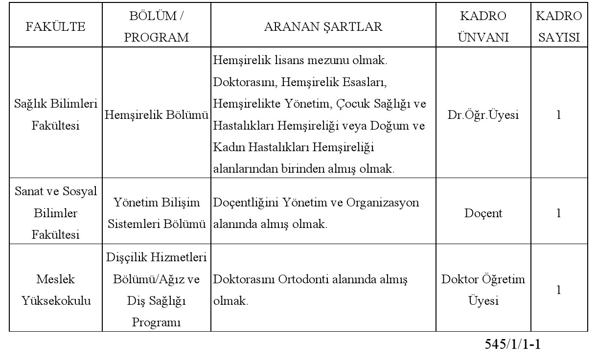 ÖĞRETİM ÜYESİ ALIM İLANI