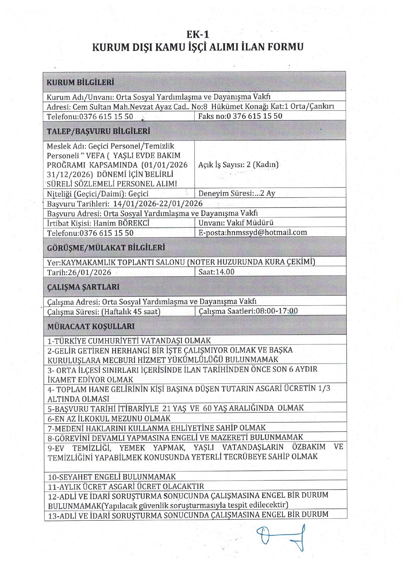 Çankırı Orta SYDV Geçici 2 İşçi Alacak. Son başvuru tarihi 22 Ocak 2026