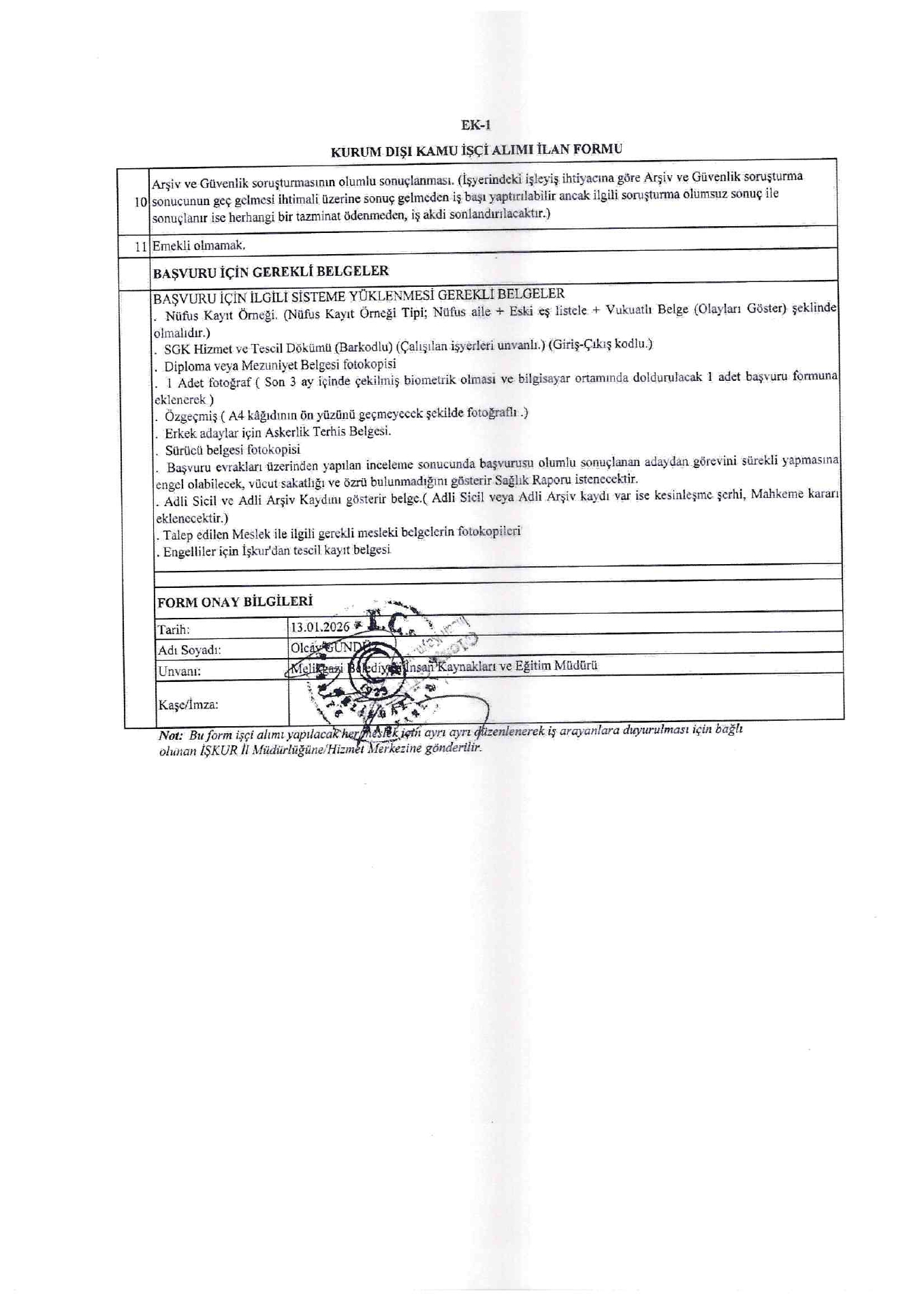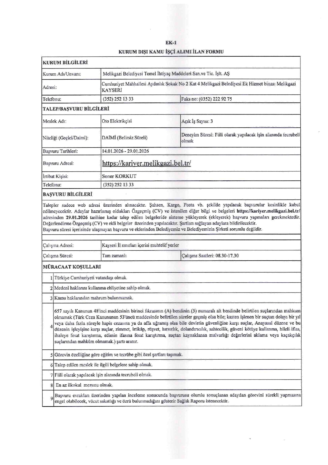 Ana sayfaDaimi İşçi İlanları Kayseri Melikgazi Belediyesi 6 İşçi Alacak Kayseri Melikgazi Belediyesi 6 İşçi Alacak. Son başvuru tarihi 29 Ocak 2026 Kaynak : İşkur İlan Giriş : 15 Ocak 2026 22:02, Son Güncelleme : 15 Ocak 2026 23:13 Yazdır Yorumlar (0) Abone Ol