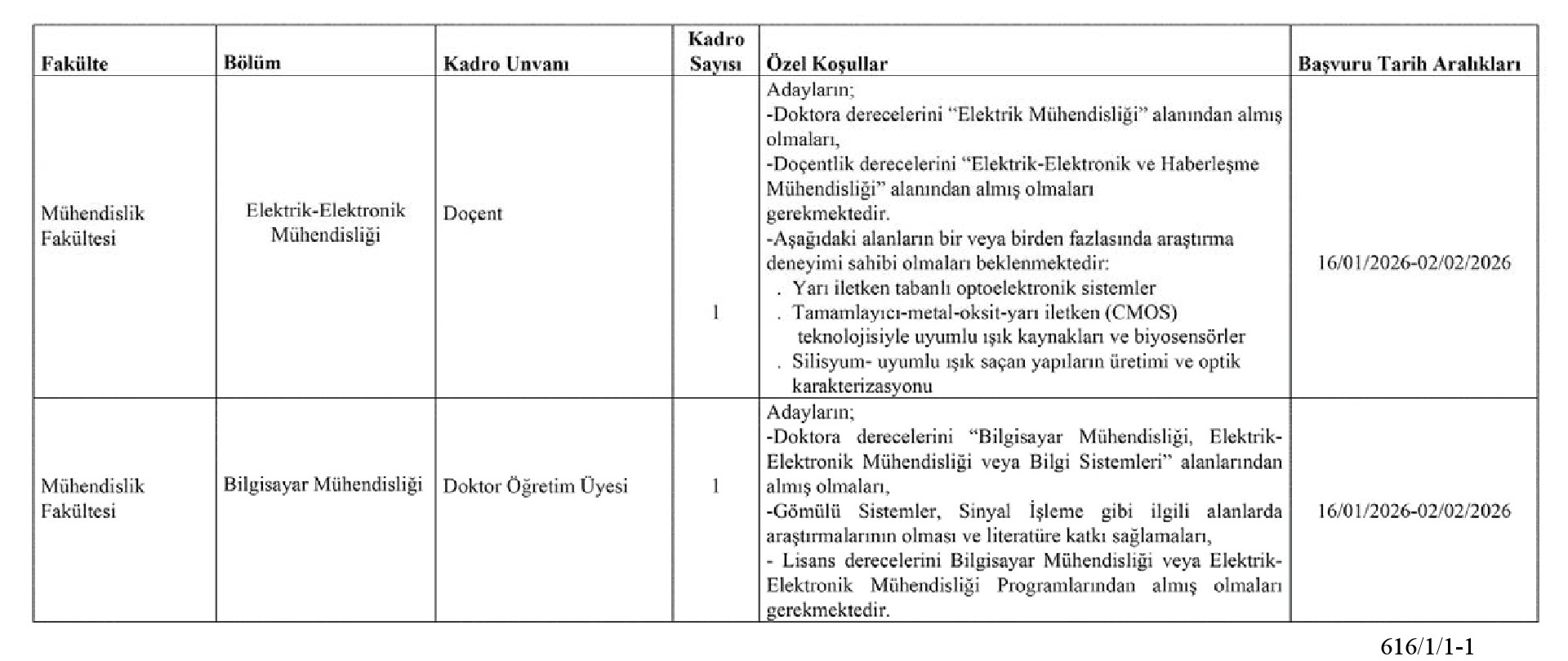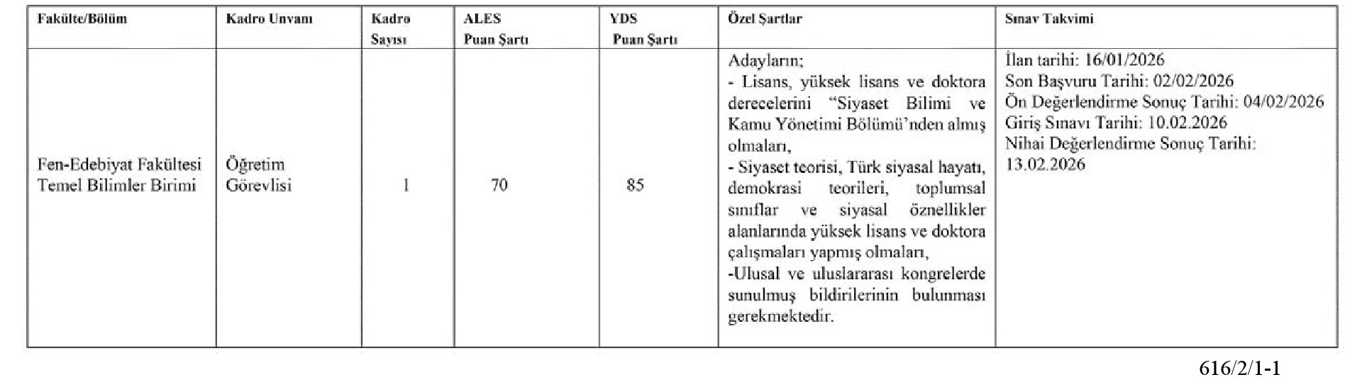 Başvurusu dosyası bilimsel yayın ve çalışmaları kapsayacak olup, dosyası eksiksiz adaylar değerlendirilecektir. Eksik belgeler ve ilan kriterlerini taşımayan belgeler geçerli olmayacaktır. Başvurular TED Üniversitesi (TEDÜ) İnsan Kaynakları Müdürlüğüne şahsen/posta aracılığı /e-posta ([email protected]) ile yapılabilir. Postadaki gecikmeler ve eksik belge ile yapılan başvurular dikkate alınmaz. Kadro ile ilgili diğer tamamlayıcı bilgilere http://www.tedu.edu.tr/ internet adresinden ulaşılabilmektedir. Duyurulur.