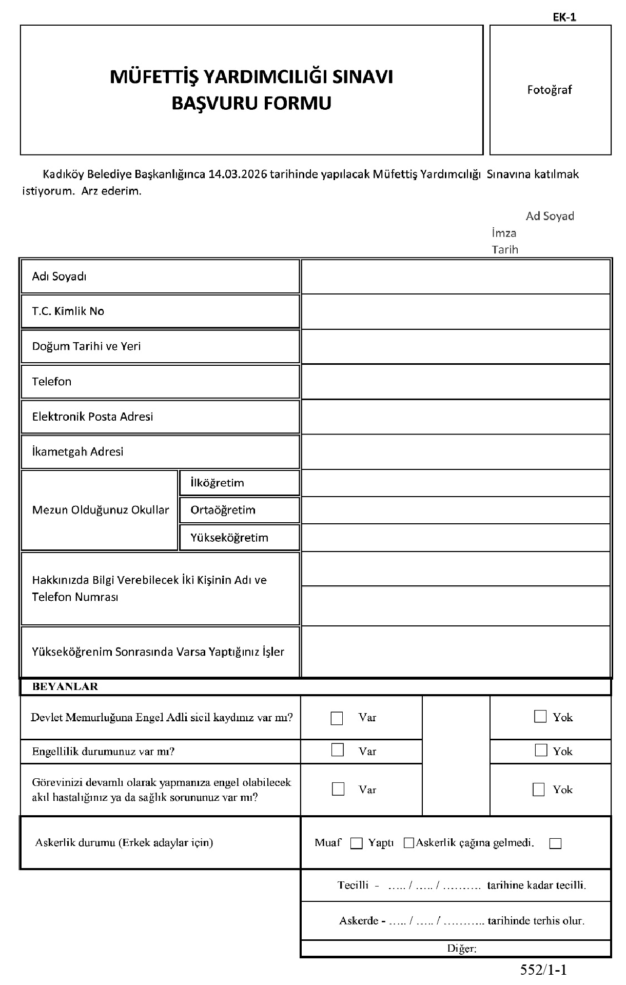 4.3. Son altı ay içerisinde çekilmiş 1 adet vesikalık fotoğraf.