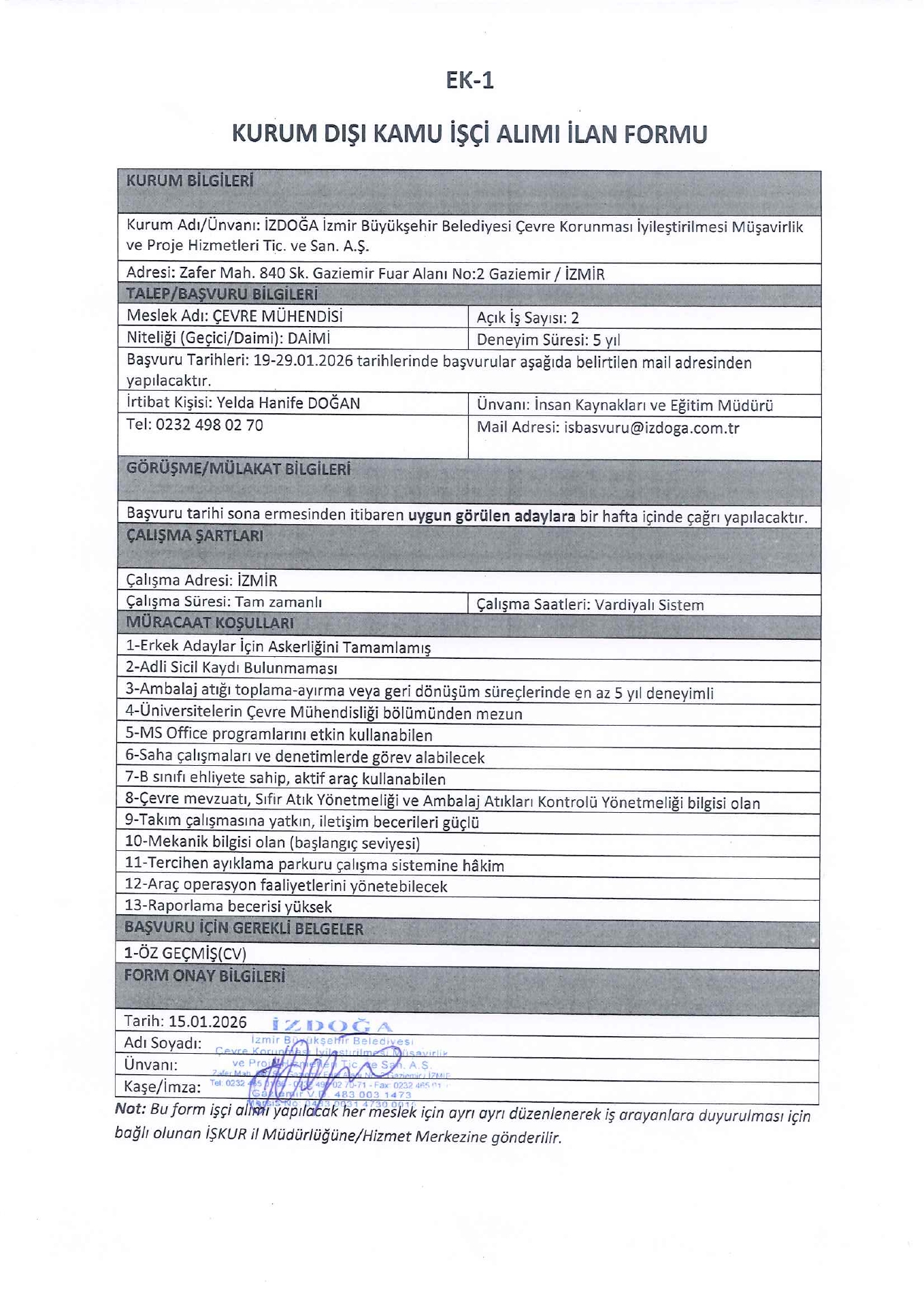 İzmir İzdoğa 2 İşçi Alacak. Son başvuru tarihi 19 Ocak 2026