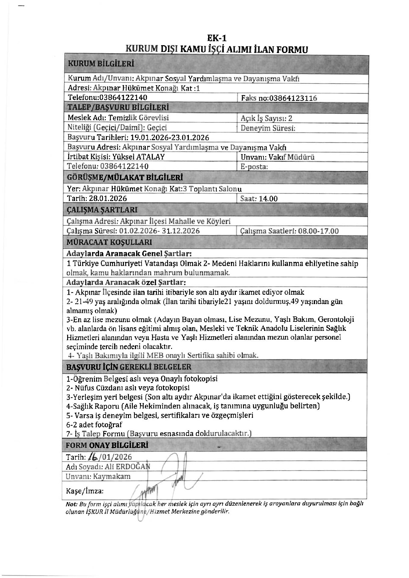 Ana sayfaSYDV İlanlarıAna sayfaGeçici İşçi İlanları Akpınar SYDV Geçici 2 İşçi Alacak Akpınar SYDV Geçici 2 İşçi Alacak. Son başvuru tarihi 23 Ocak 2026 Kaynak : İşkur İlan Giriş : 19 Ocak 2026 23:09, Son Güncelleme : 19 Ocak 2026 23:45 Yazdır Yorumlar (0) Abone Ol