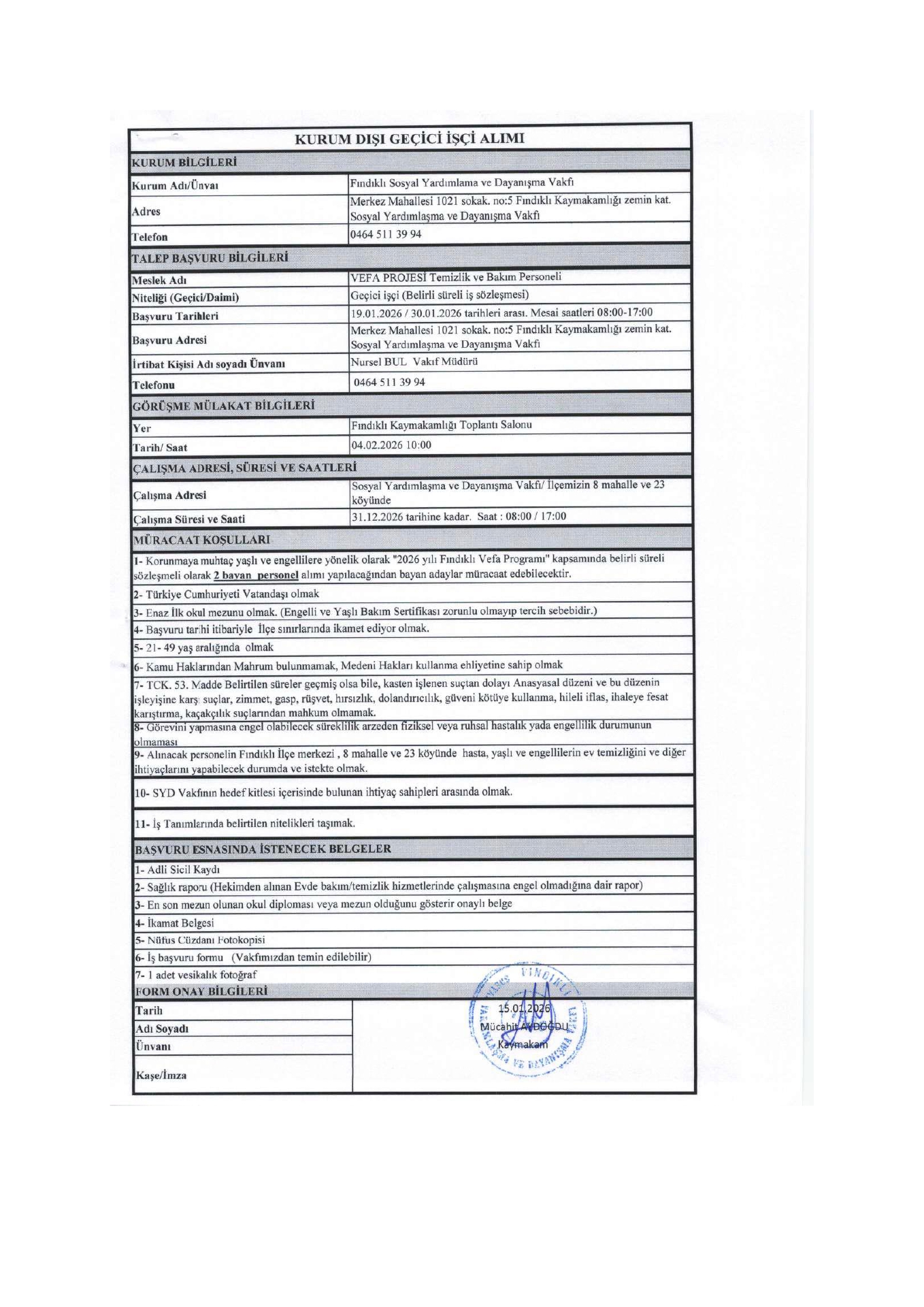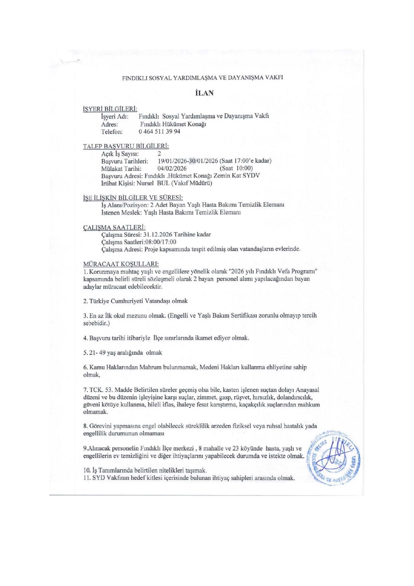 Ana sayfaSYDV İlanlarıAna sayfaGeçici İşçi İlanları Fındıklı SYDV Geçici İşçi Alım İlanı Fındıklı SYDV Geçici İşçi Alım İlanı. Son başvuru tarihi 30 Ocak 2026 Kaynak : İşkur İlan Giriş : 19 Ocak 2026 23:15, Son Güncelleme : 19 Ocak 2026 23:44 Yazdır Yorumlar (0) Abone Ol