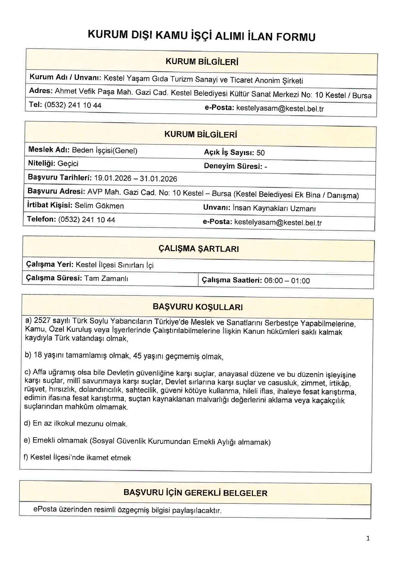 Ana sayfaGeçici İşçi İlanları Bursa Kentsel Yaşam Geçici 50 İşçi Alacak Bursa Kentsel Yaşam Geçici 50 İşçi Alacak. Son başvuru tarihi 31 Ocak 2026 Kaynak : İşkur İlan Giriş : 19 Ocak 2026 23:24, Son Güncelleme : 19 Ocak 2026 23:40 Yazdır Yorumlar (0) Abone Ol