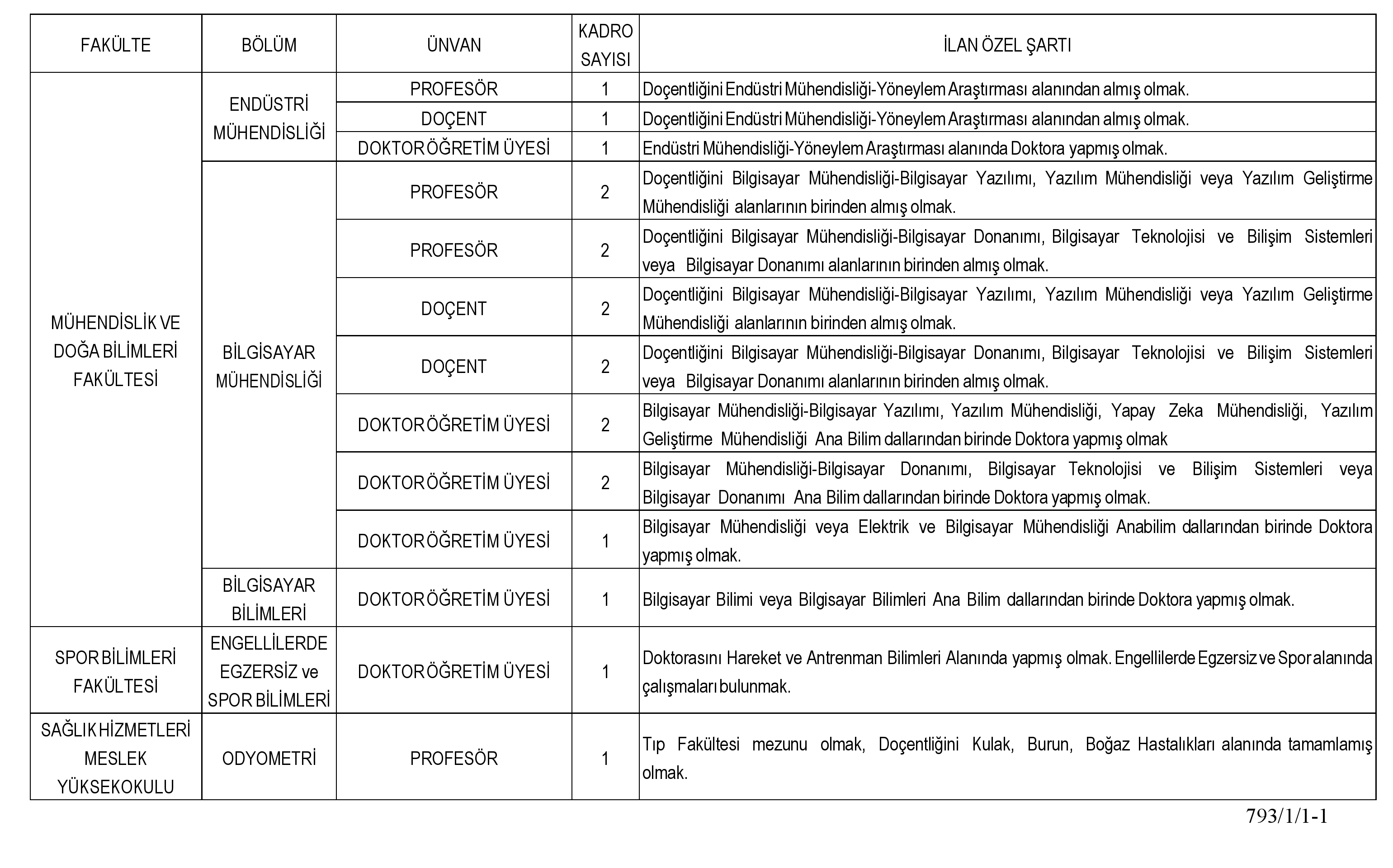 Üniversitemizin aşağıda belirtilen Fakülte ve Yüksekokul Bölümlerine 2547 sayılı Yükseköğretim Kanununun "Öğretim Üyeliğine Yükseltilme ve Atanma Yönetmeliği"nin ilgili maddelerine göre Öğretim Üyeleri alınacaktır.