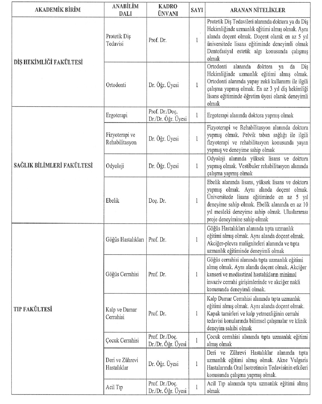 Üniversitemizin aşağıda belirtilen Fakülte/Meslek Yüksekokulu/Enstitü bölüm, program ve anabilim dallarına 2547 sayılı Kanun'un ilgili maddeleri hükümlerince öğretim elemanı alınacaktır.