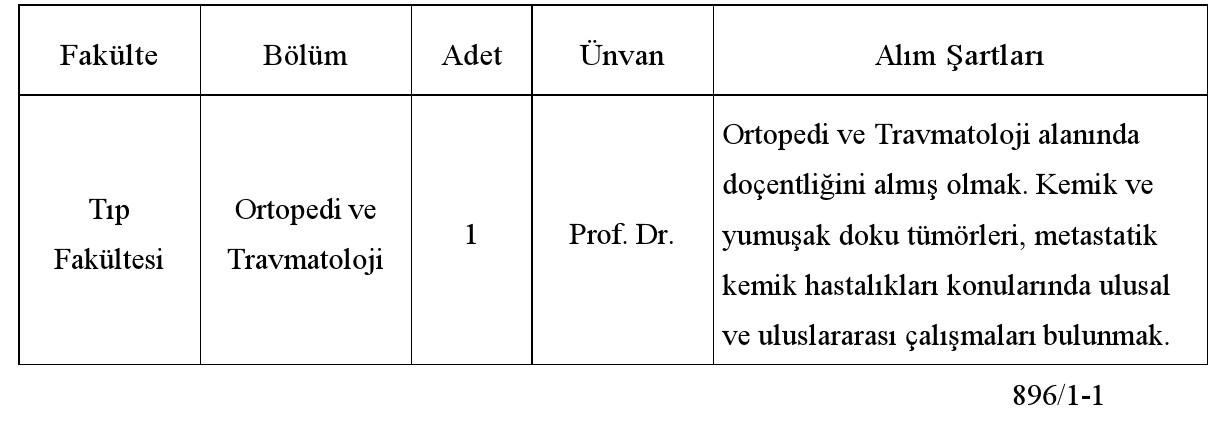 Üniversitemizin aşağıda belirtilen akademik birimlerine 2547 sayılı Yükseköğretim Kanunu ve Öğretim Üyeliğine Yükseltilme ve Atanma Yönetmeliği'nin ilgili maddeleri uyarınca, Üniversitemizin Akademik Birimine tam zamanlı öğretim üyesi alınacaktır.