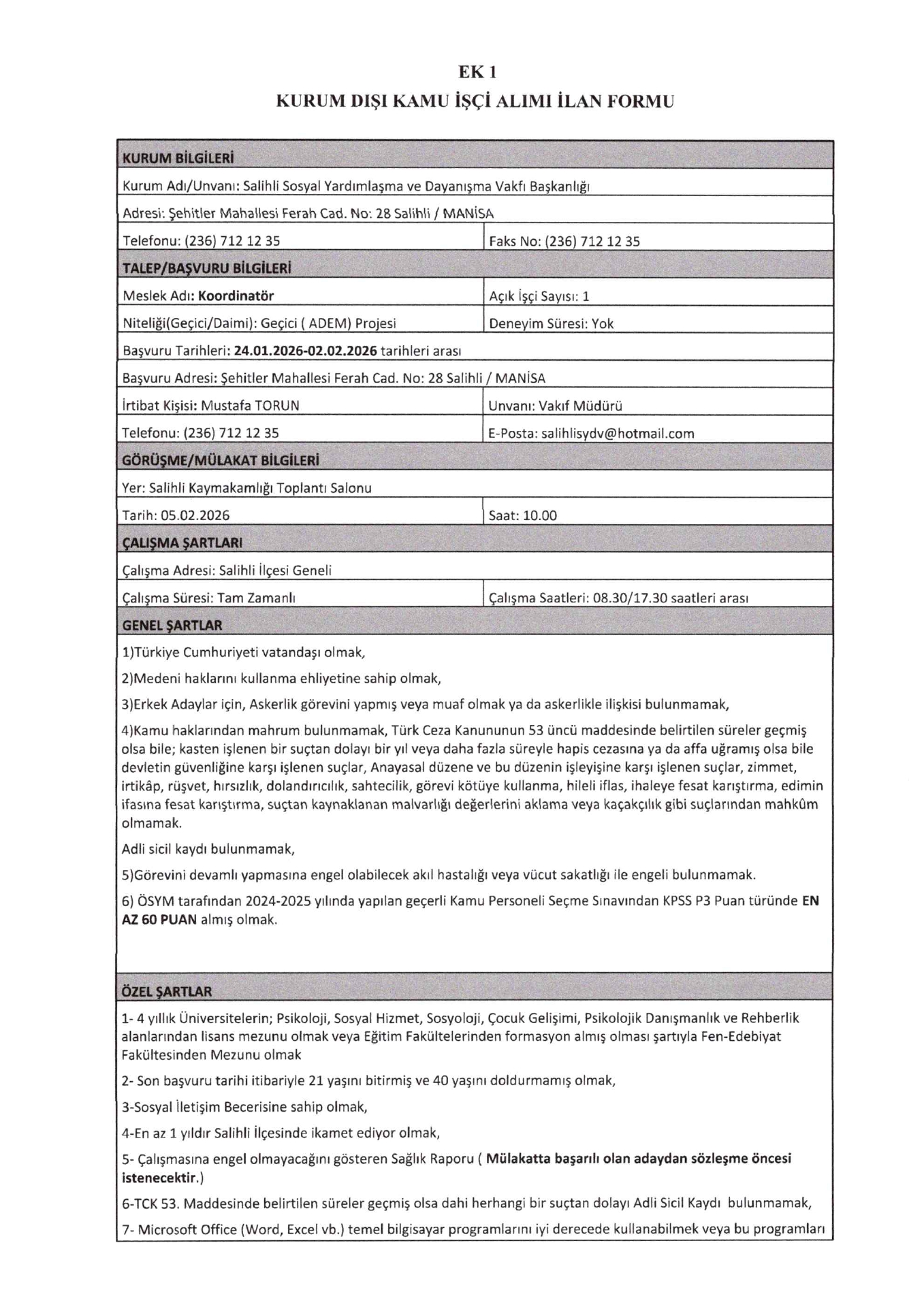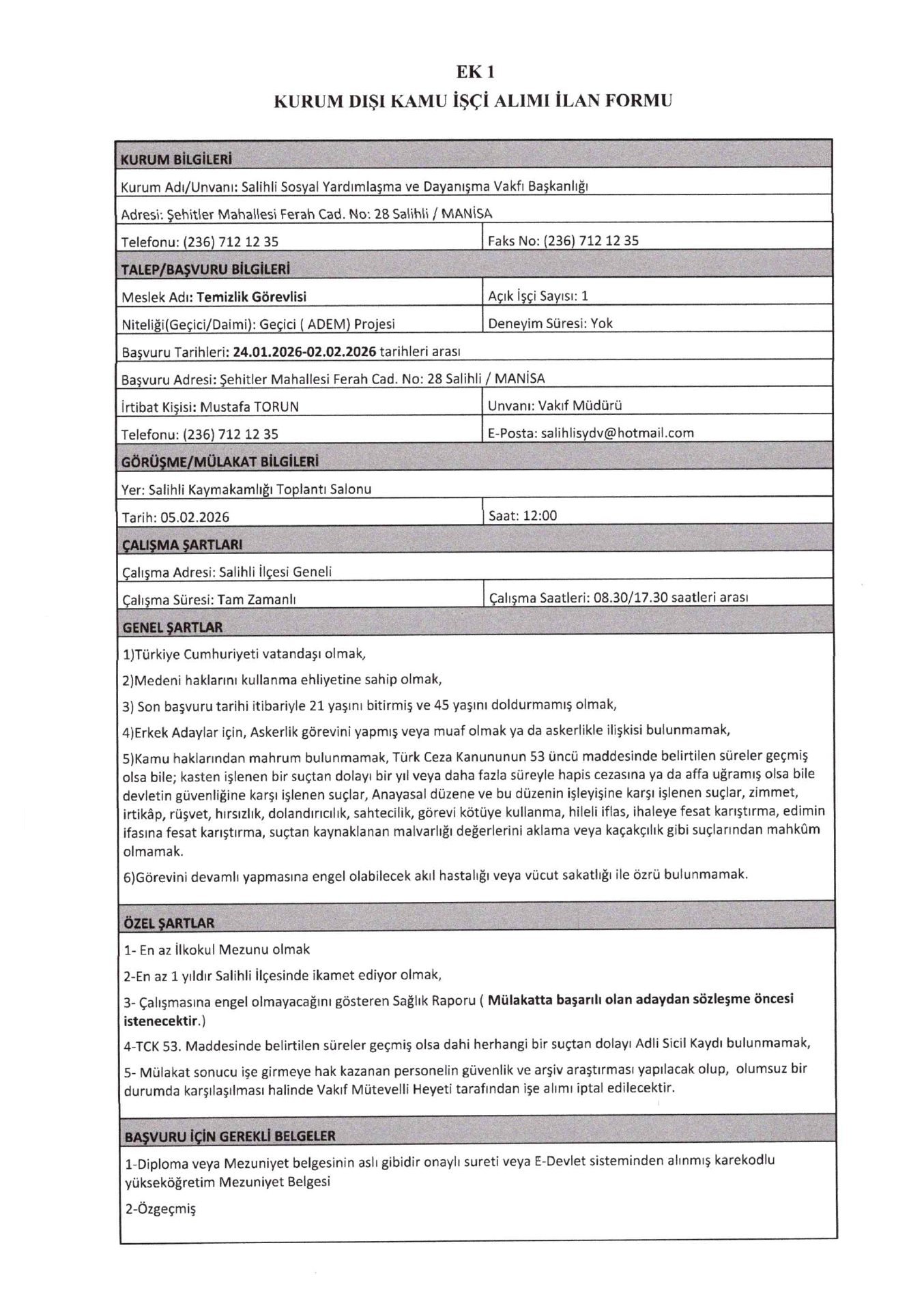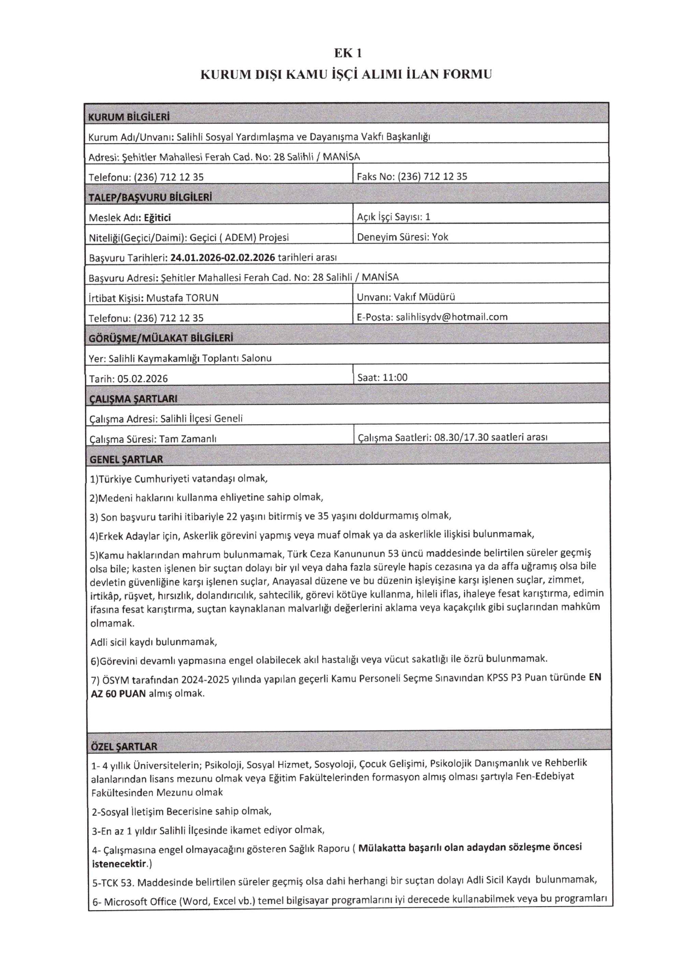Ana sayfaDaimi İşçi İlanlarıAna sayfaSYDV İlanları Manisa Salihli SYDV 3 İşçi Alacak Manisa Salihli SYDV 3 İşçi Alacak. Son başvuru tarihi 2 Şubat 2026 Kaynak : İşkur İlan Giriş : 27 Ocak 2026 01:03, Son Güncelleme : 27 Ocak 2026 03:29 Yazdır Yorumlar (0) Abone Ol