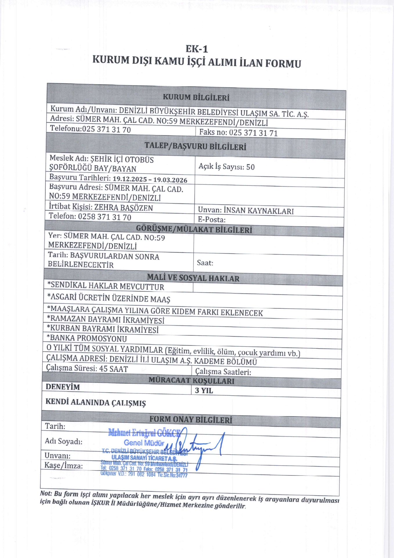 Ana sayfaDaimi İşçi İlanları Denizli Büyükşehir Belediyesi 50 İşçi Alacak Denizli Büyükşehir Belediyesi 50 İşçi Alacak. Son başvuru tarihi 19 Mart 2026 Kaynak : İşkur İlan Giriş : 27 Ocak 2026 23:06, Son Güncelleme : 27 Ocak 2026 23:36 Yazdır Yorumlar (0) Abone Ol