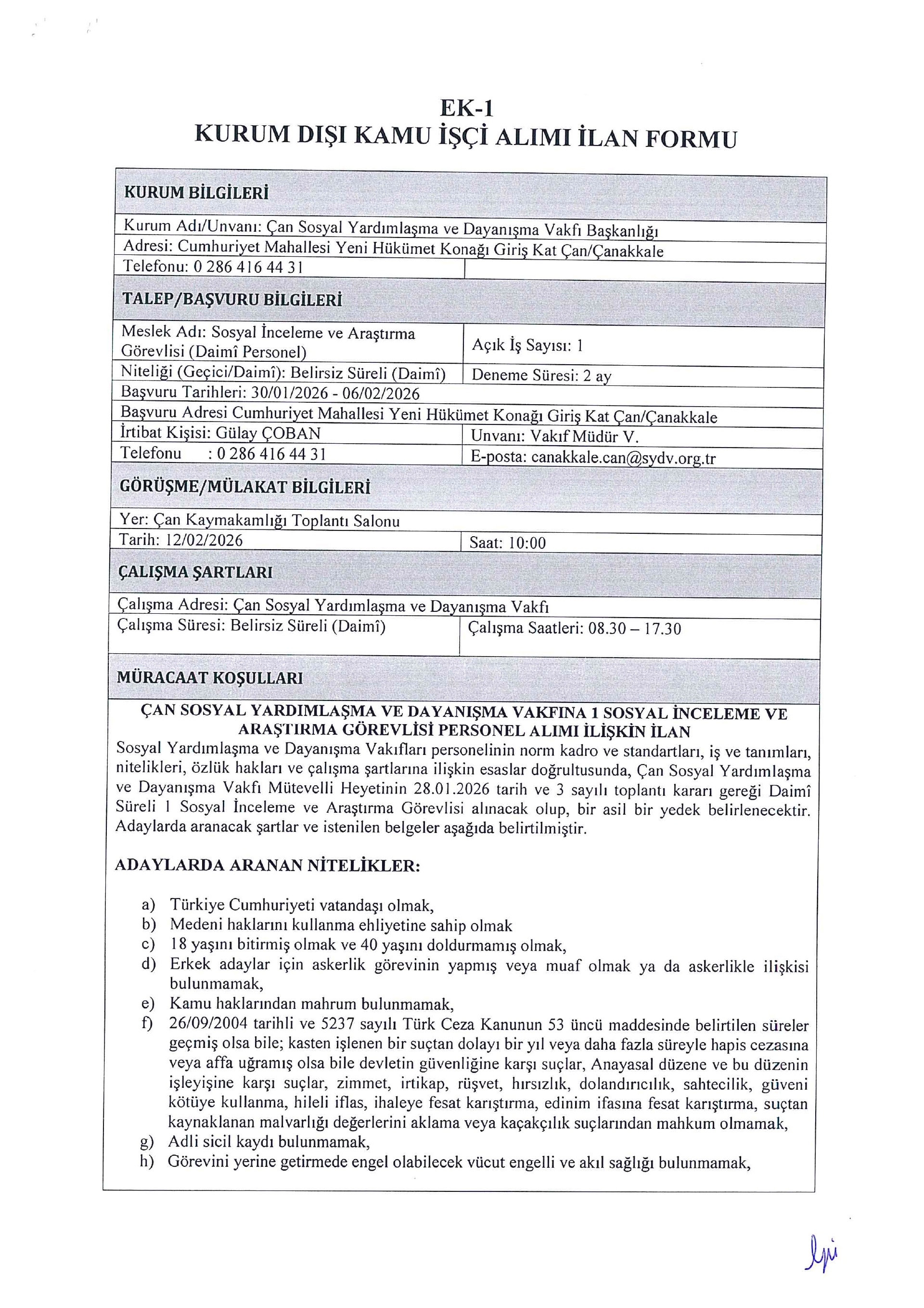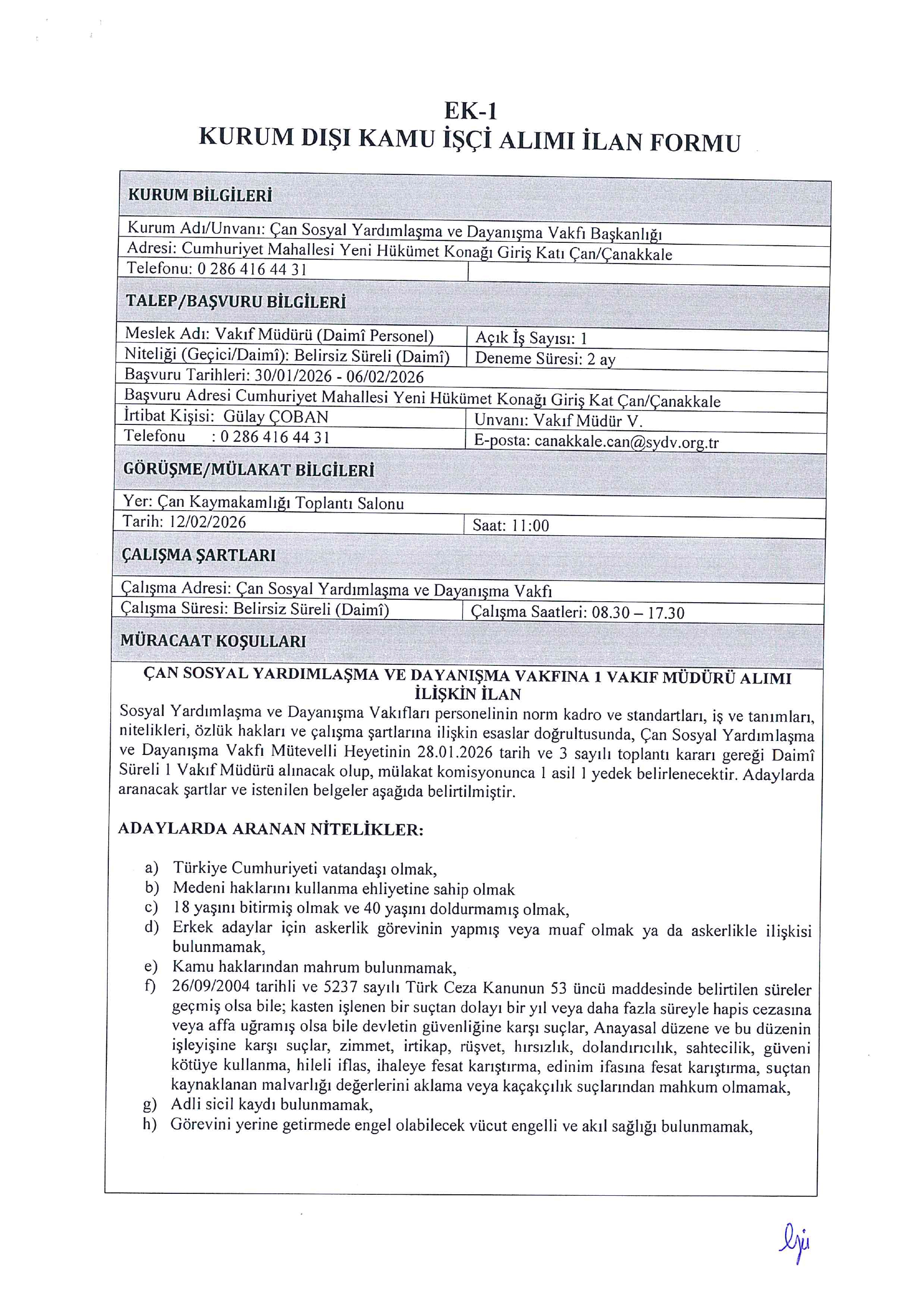 Ana sayfaSYDV İlanlarıAna sayfaGeçici İşçi İlanları Çanakkale Çan SYDV Geçici 2 İşçi Alacak Çanakkale Çan SYDV Geçici 2 İşçi Alacak. Son başvuru tarihi 6 Şubat 2026 Kaynak : İşkur İlan Giriş : 02 Şubat 2026 23:13, Son Güncelleme : 02 Şubat 2026 23:54 Yazdır Yorumlar (0) Abone Ol