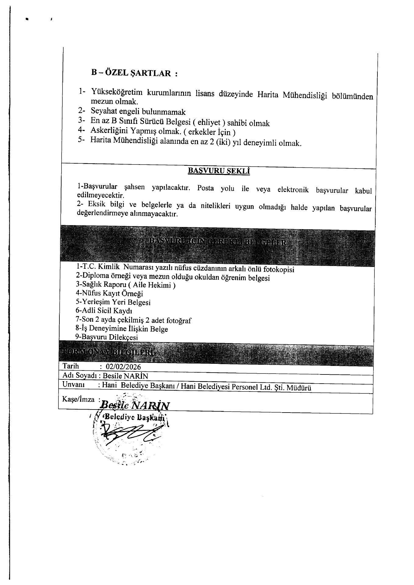 Ana sayfaDaimi İşçi İlanları Diyarbakır Hani Belediyesi 1 İşçi Alacak Diyarbakır Hani Belediyesi 1 İşçi Alacak. Son başvuru tarihi 10 Şubat 2026 Kaynak : İşkur İlan Giriş : 04 Şubat 2026 23:28, Son Güncelleme : 04 Şubat 2026 23:49 Yazdır Yorumlar (0) Abone Ol